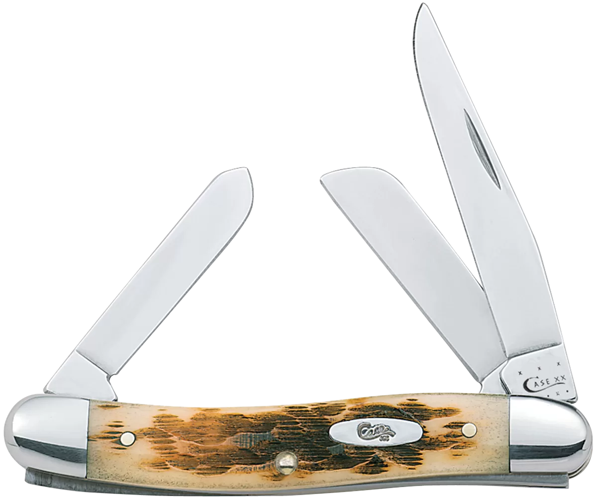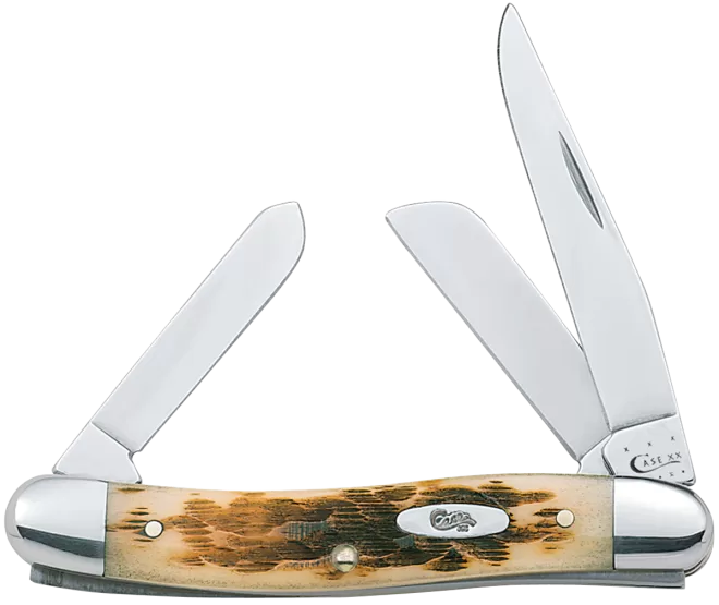 Stockman packs three blades in a convenient but very practical pocket knife. The clip and sheepfoot blade sit on the pocket end while the spey blade sits on the cap end. The clip blade is commonly used as a multi-purpose blade.