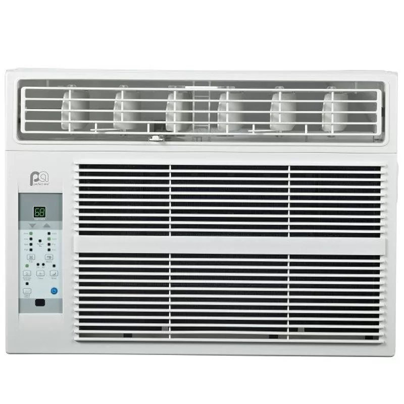 Perfect Aire 4PNC10000 Window Air Conditioner, 10,000 Btu Cooling, 10.9 Btu/W EER, 400 to 450 sq-ft Coverage Area. mounting kit accommodates vertical sliding, double-hung windows with a 23 to 36 in width and 13 in minimum height. Remote.