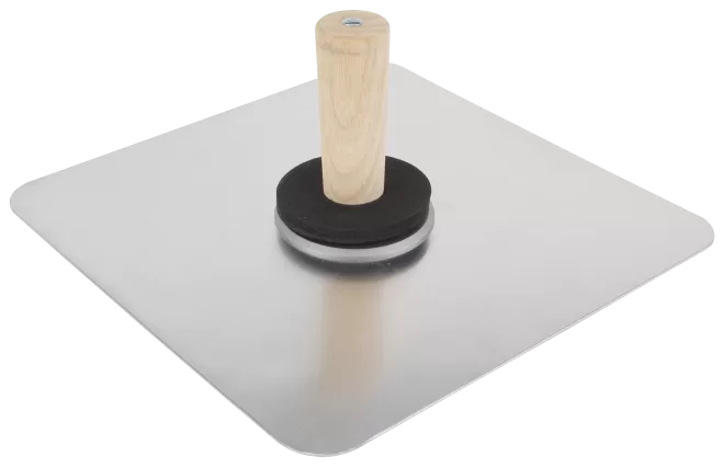 The Vulcan 169503L Hawk is made of heavy gauge hard-rolled aluminum with smooth edges and round corners for convenience. The 13 in L x 13 in W wood handle and sponge callus preventer is included.