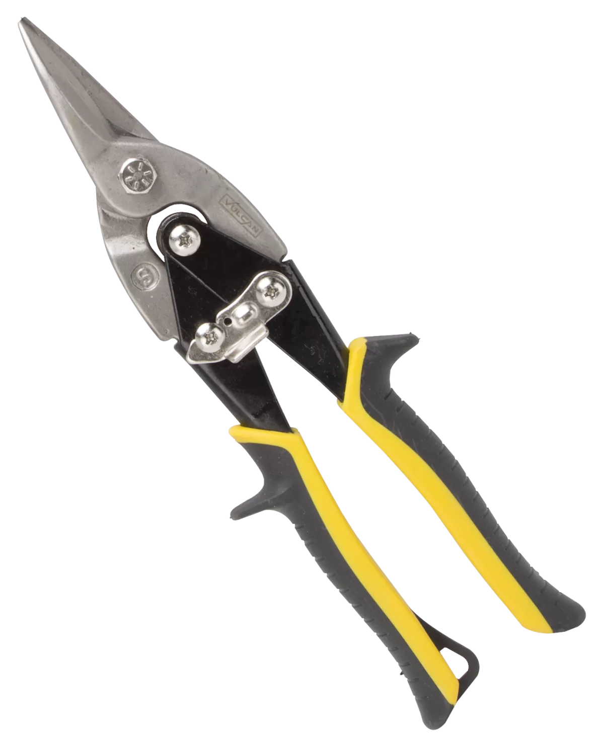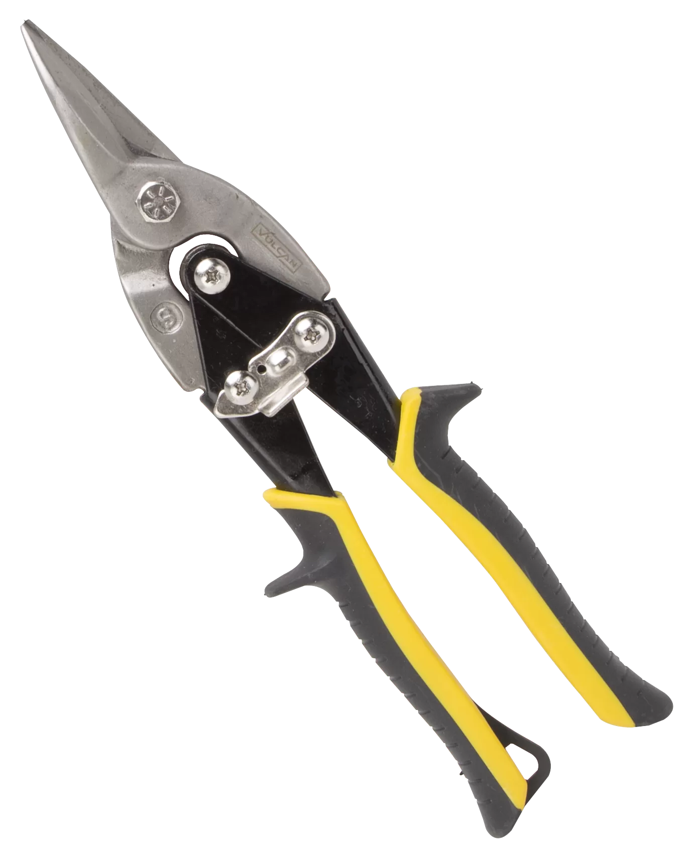 Cut Type: Straight, Handle Type: Cushion Grip, OVerall Length: 10-1/8″, Blade Material: Chrome Vanadium Steel, Cut Material: Cold Rolled Steel/Stainless Steel