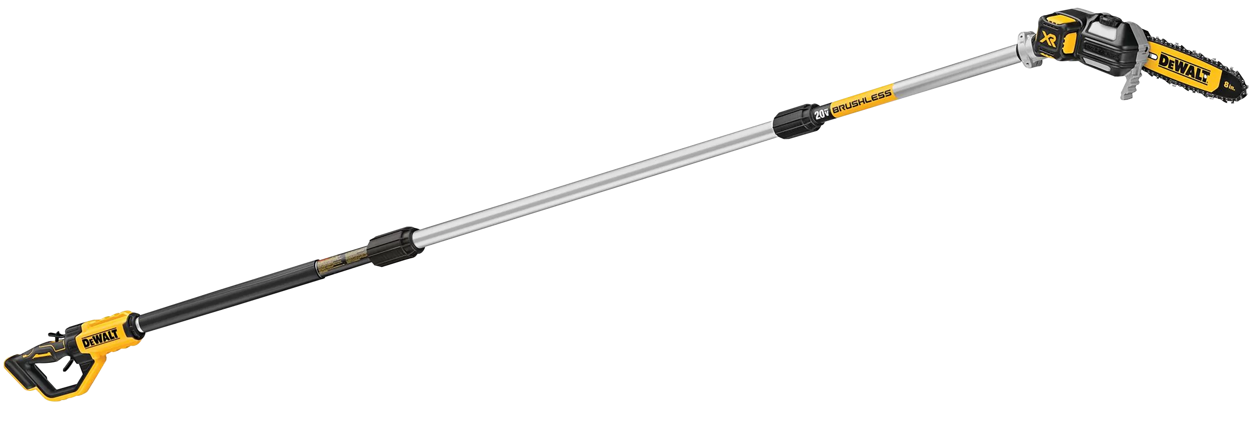 DEWALT Pole Saw, Power Source: Battery, Power Supply: 20 V, Pole Material: Plastic, Comfort-Grip Handle, Black/Yellow, 8 in OAL, Includes: Tool Only