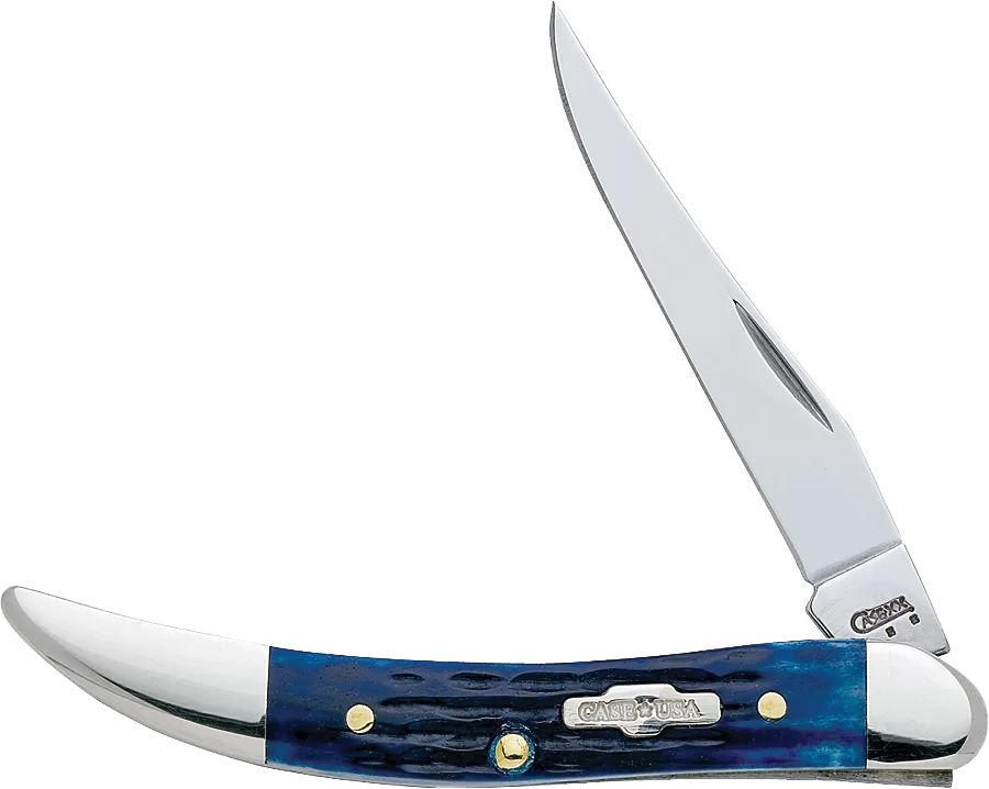 Blue bone knives have stainless steel blades that get the job done and their classic blue handles look even better the longer you carry them. Smaller version of the Medium Texas toothpick, features a long clip blade and has a small design.