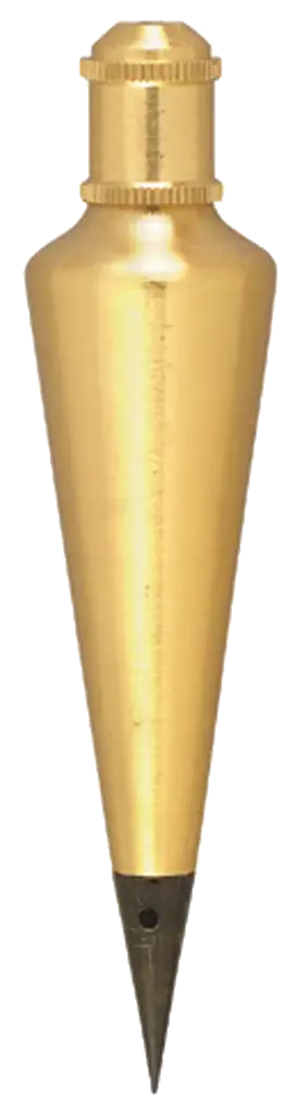 For finding a plumb (vertical) line over a long distance. High-quality plated brass, lacquered with replaceable hardened tips. Removable cap for quick, easy and accurate centered string installation.