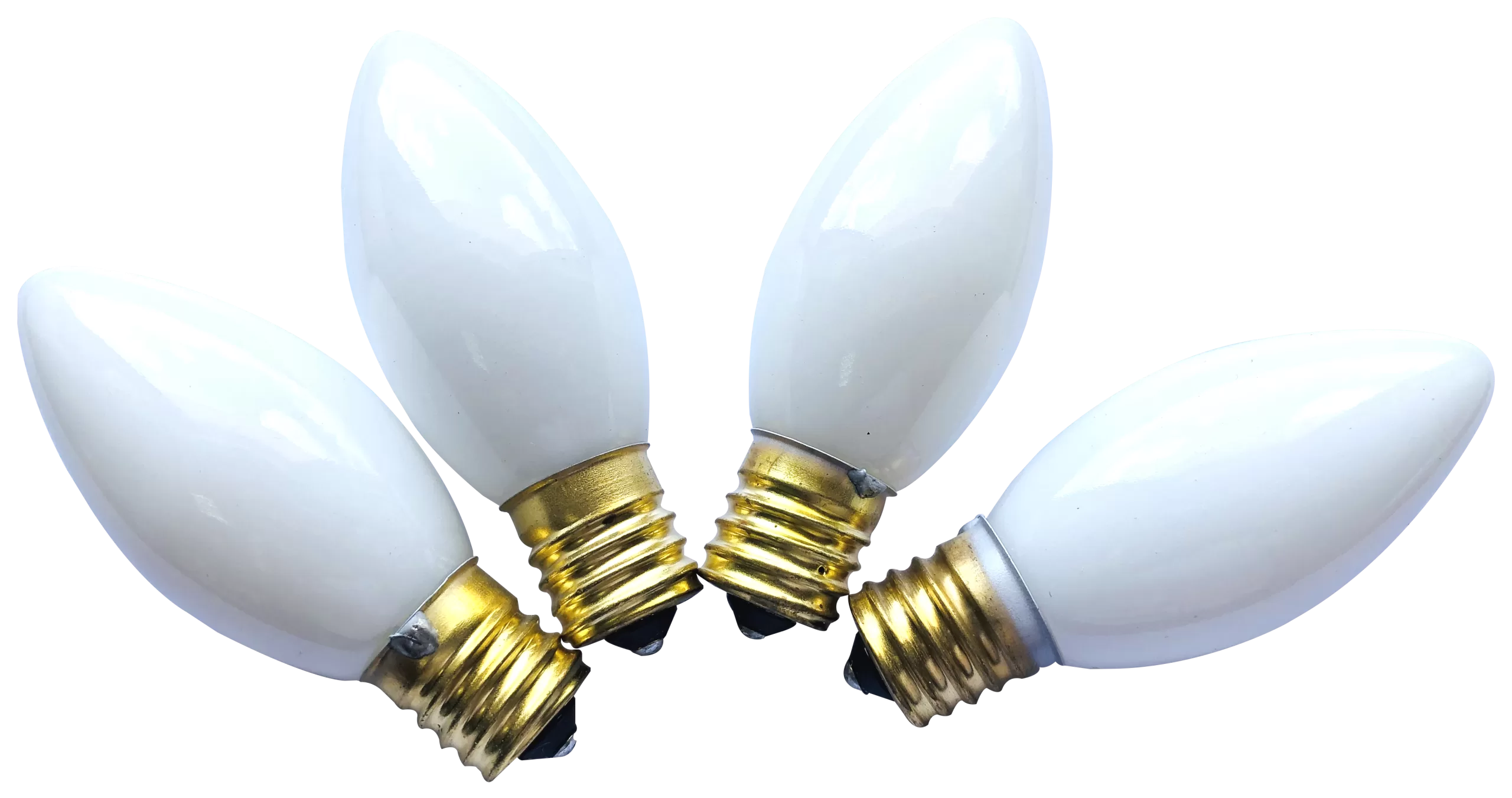 7W, 120V, Color: Ceramic White, Lamp Base: Intermidiate, Lamp Finish: White, Type: C9 Average Life 3000 hr