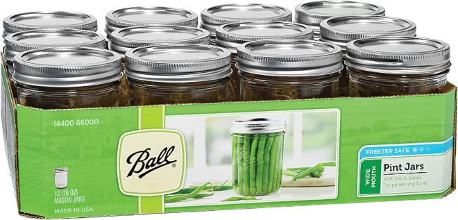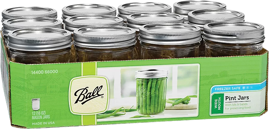 Ball Mason Jar, Wide Mouth, 1 pt, Glass/Tinplate Steel, Includes: (12) Bands, (12) Dome Lids