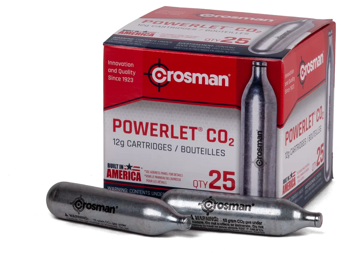 Crosman powerlet 12 g CO2 cartridges provide you with a snug fit and solid seal for a reliable, consistent performance with almost any gas-powered gun.