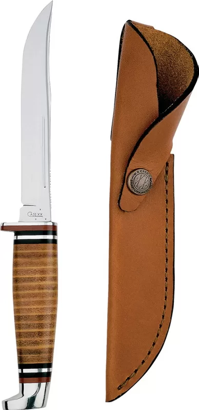 The 5″ utility leather hunter is a part of CASE’s leather hunters family. This handsome yet rugged collection is designed to stand up to years of outdoor use. This fixed-blade knife features a sabre-concave ground clip blade and a polished leather handle.
