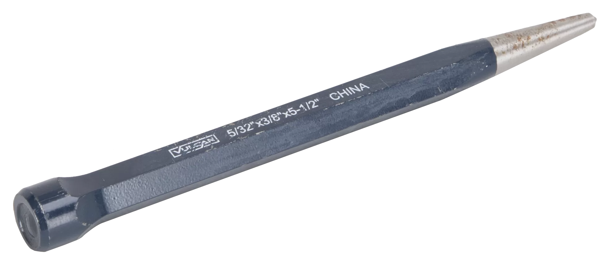 The Vulcan center punch is made from drop forged, heat treated chrome alloy steel material with baked enamel finish and heavy duty hex shank.