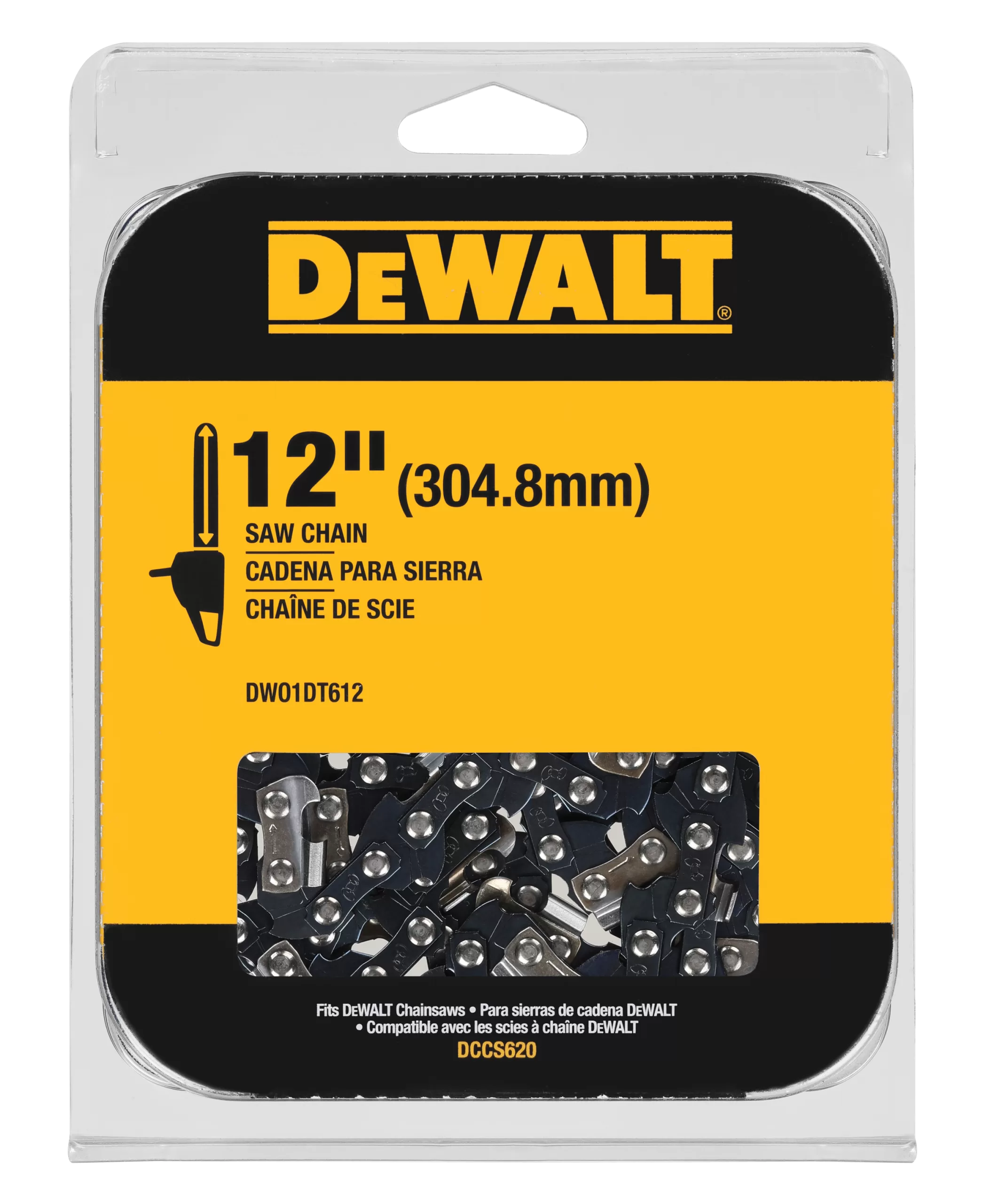 The 12 in replacement saw chain is designed for durability. It fits 12 in bars on our 20 V MAX* cordless chainsaw (DCCS620). This low-vibration chain is designed to cut smooth and fast with minimum kickback.