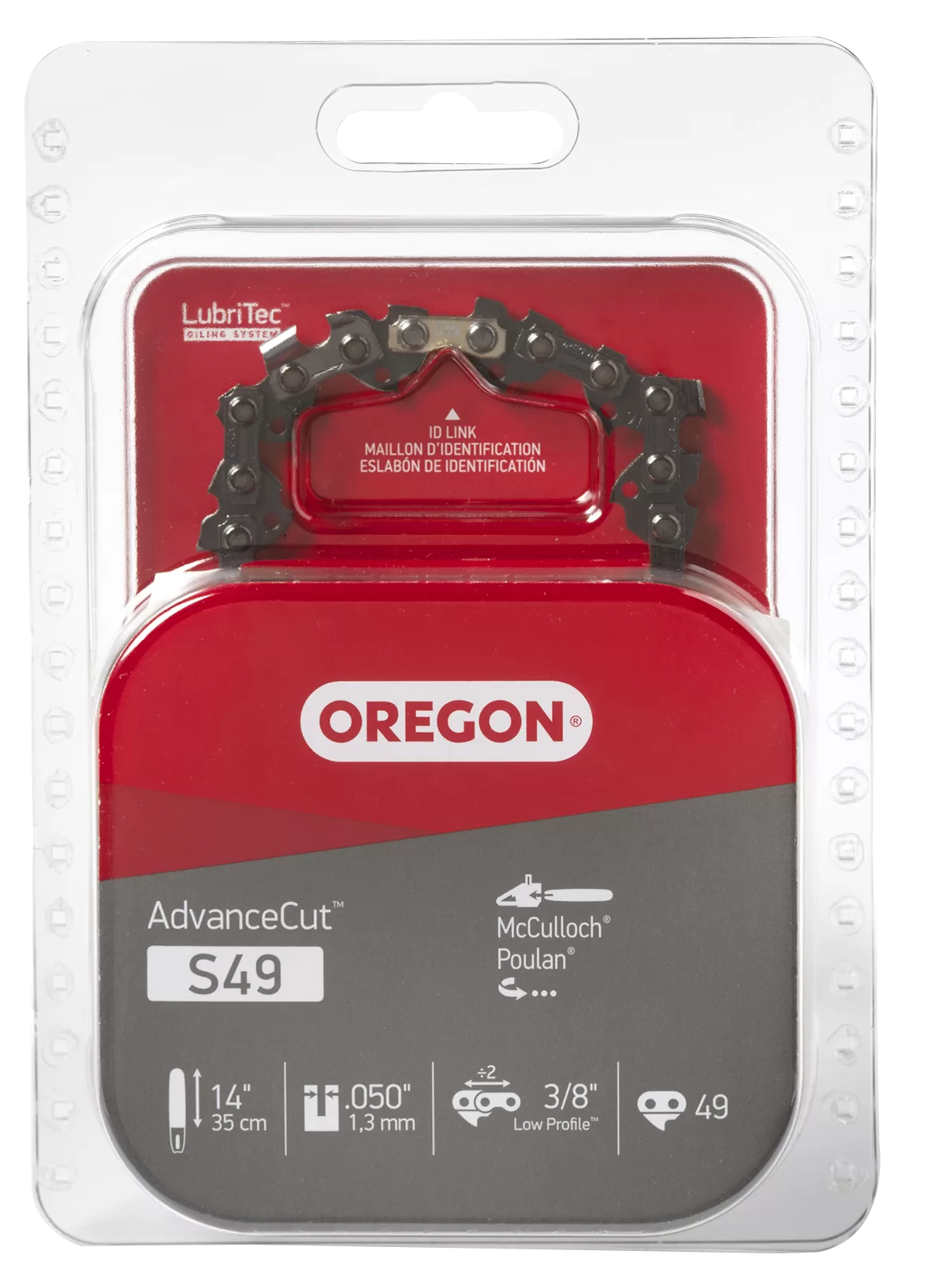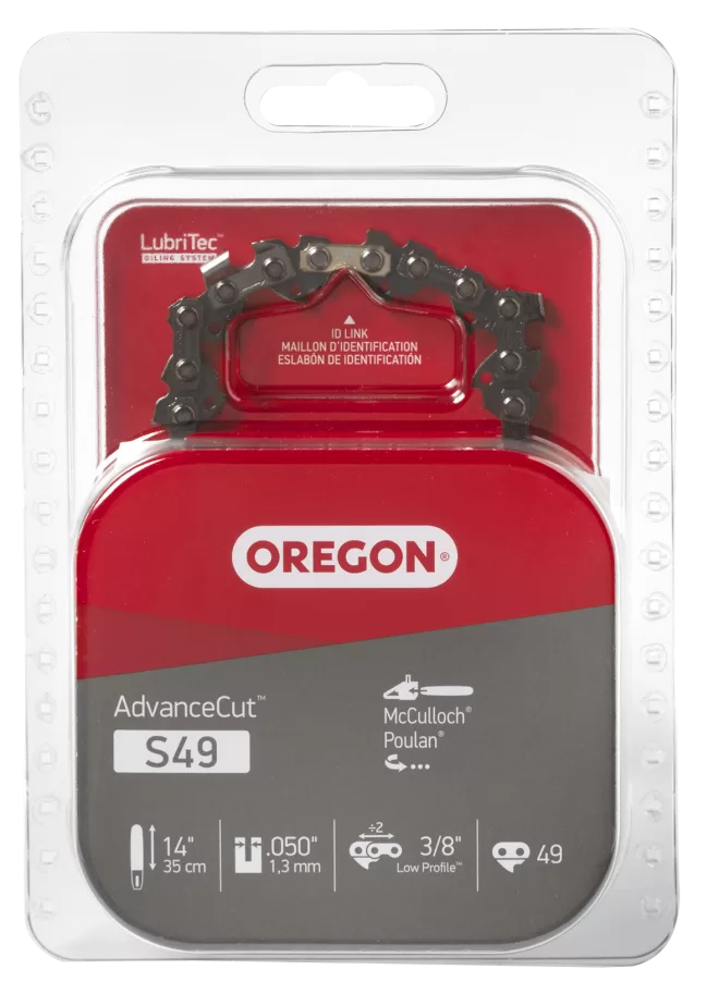 Oregon S49 Chainsaw Chain, 14 in L Bar, 0.05 Gauge, 3/8 in TPI/Pitch, 49-Link.