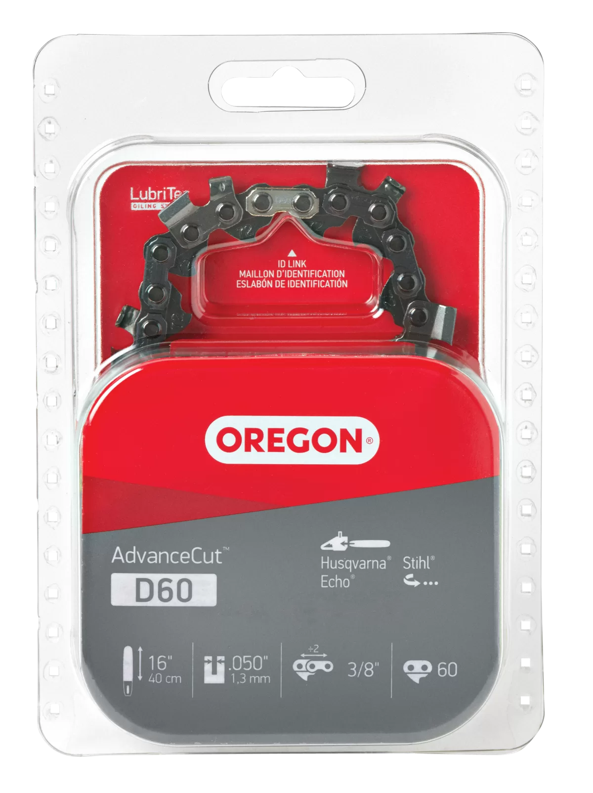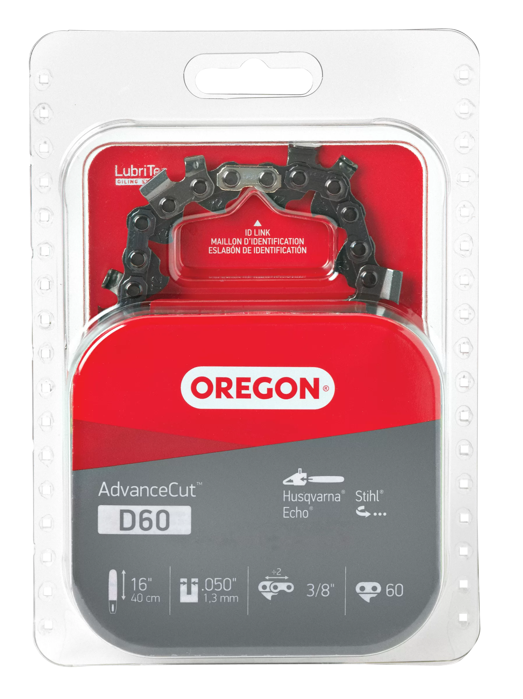 Oregon D60 Chainsaw Chain, 16 in L Bar, 0.05 Gauge, 3/8 in TPI/Pitch, 60-Link. Homelite McCulloch and Poulan Chainsaws
