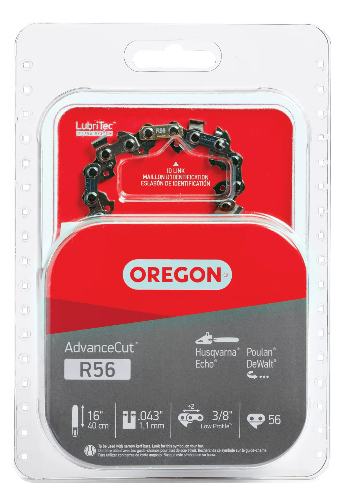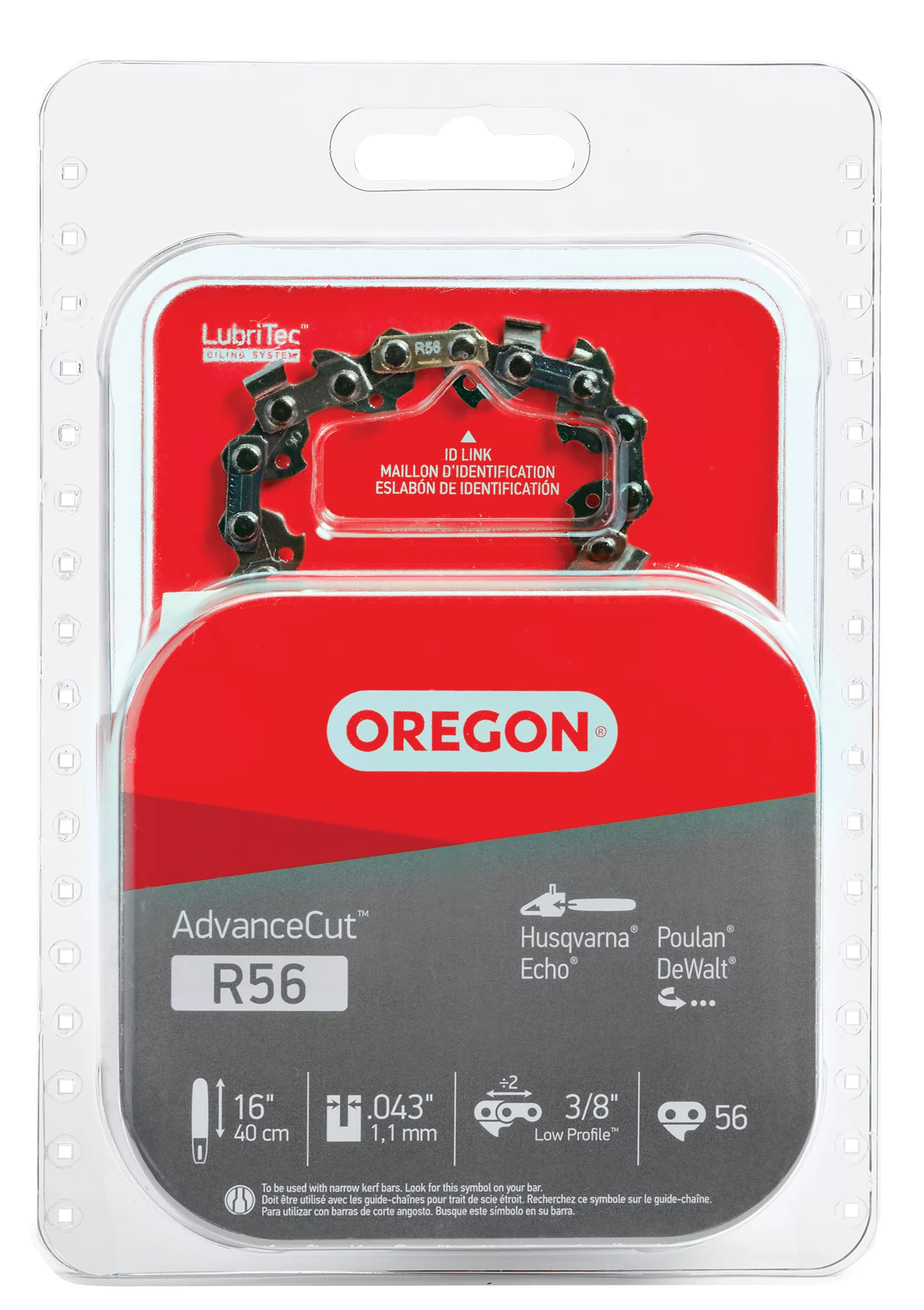 Oregon Micro-Lite R56 Chainsaw Chain, 16 in L Bar, 0.043 Gauge, 3/8 in TPI/Pitch, 56-Link. Oregon 90PX chain offers higher chain efficiency, ideal for small, low powered saws great for landscapers and homeowners. ES300 and ES350 Poulan Electric Chainsaws