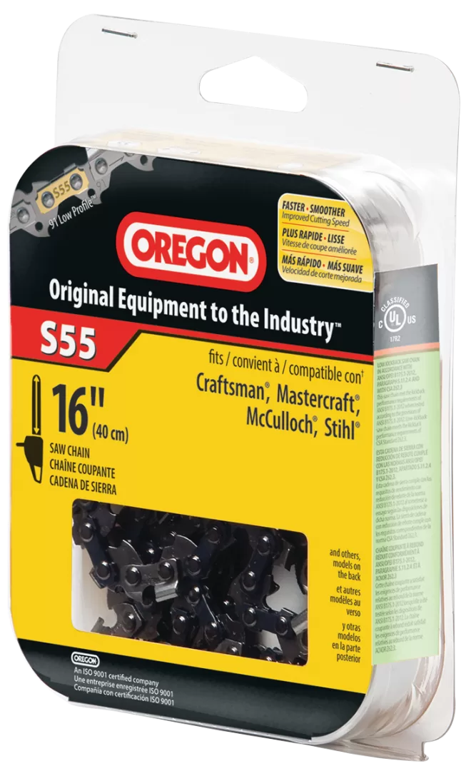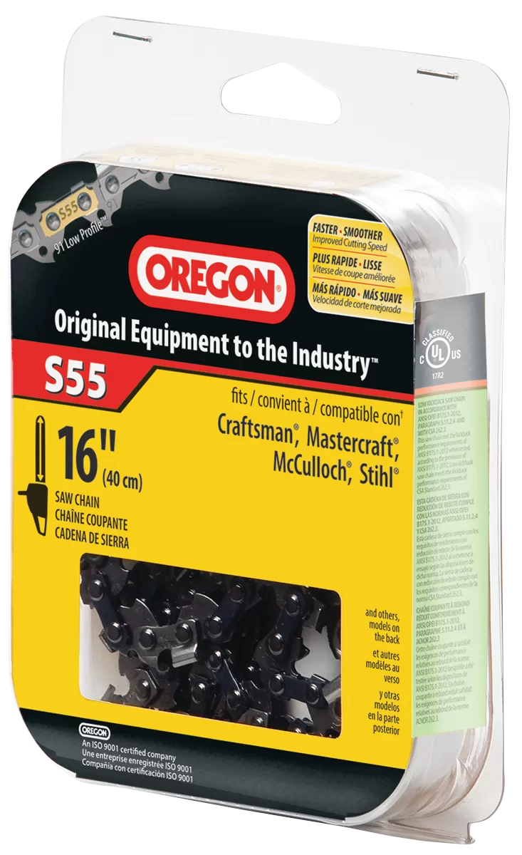 Oregon S55 Chainsaw Chain, 16 in L Bar, 3/8 in TPI/Pitch, 55-Link. McCulloch Partner Stihl and Wagner Chainsaws