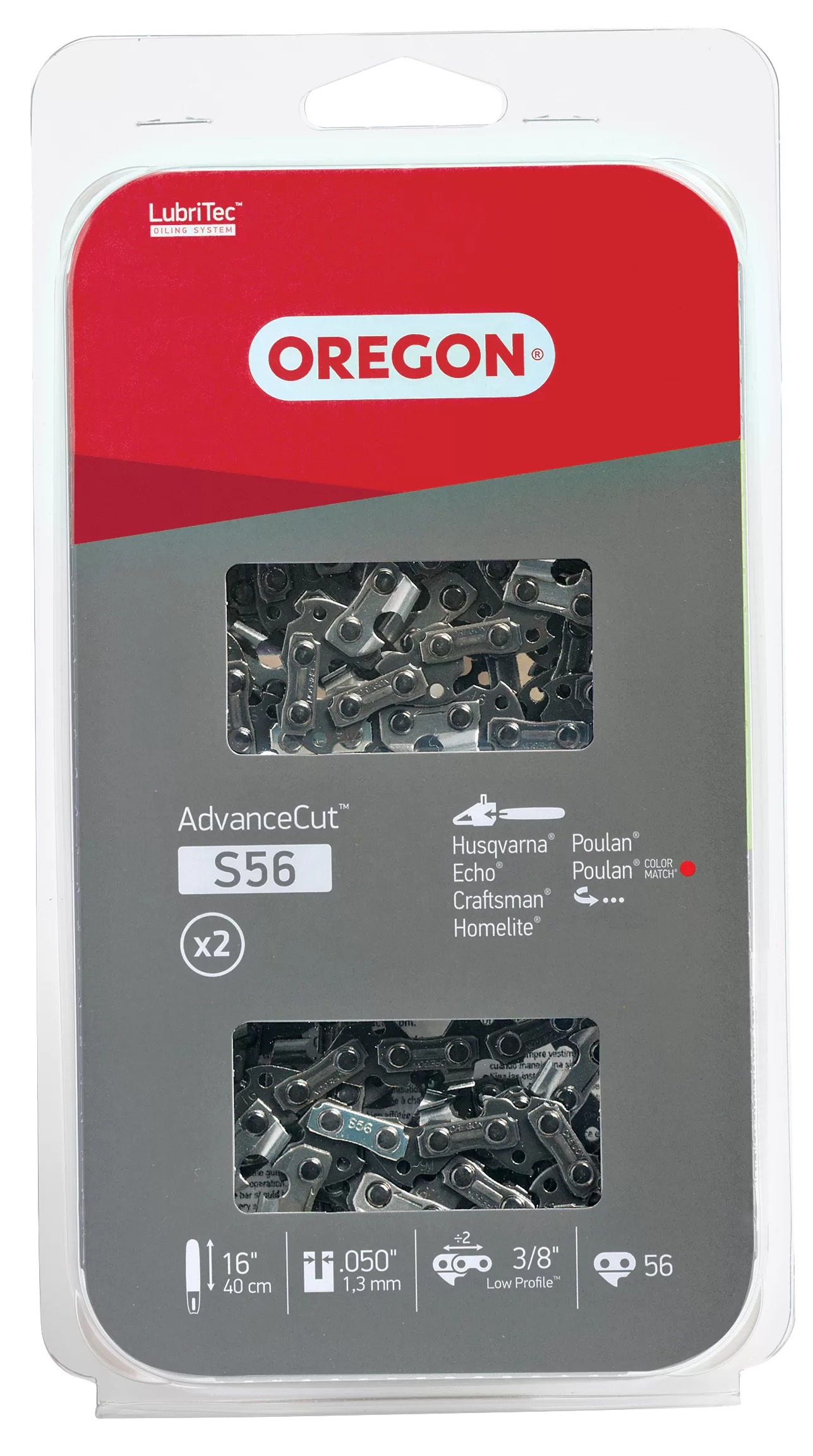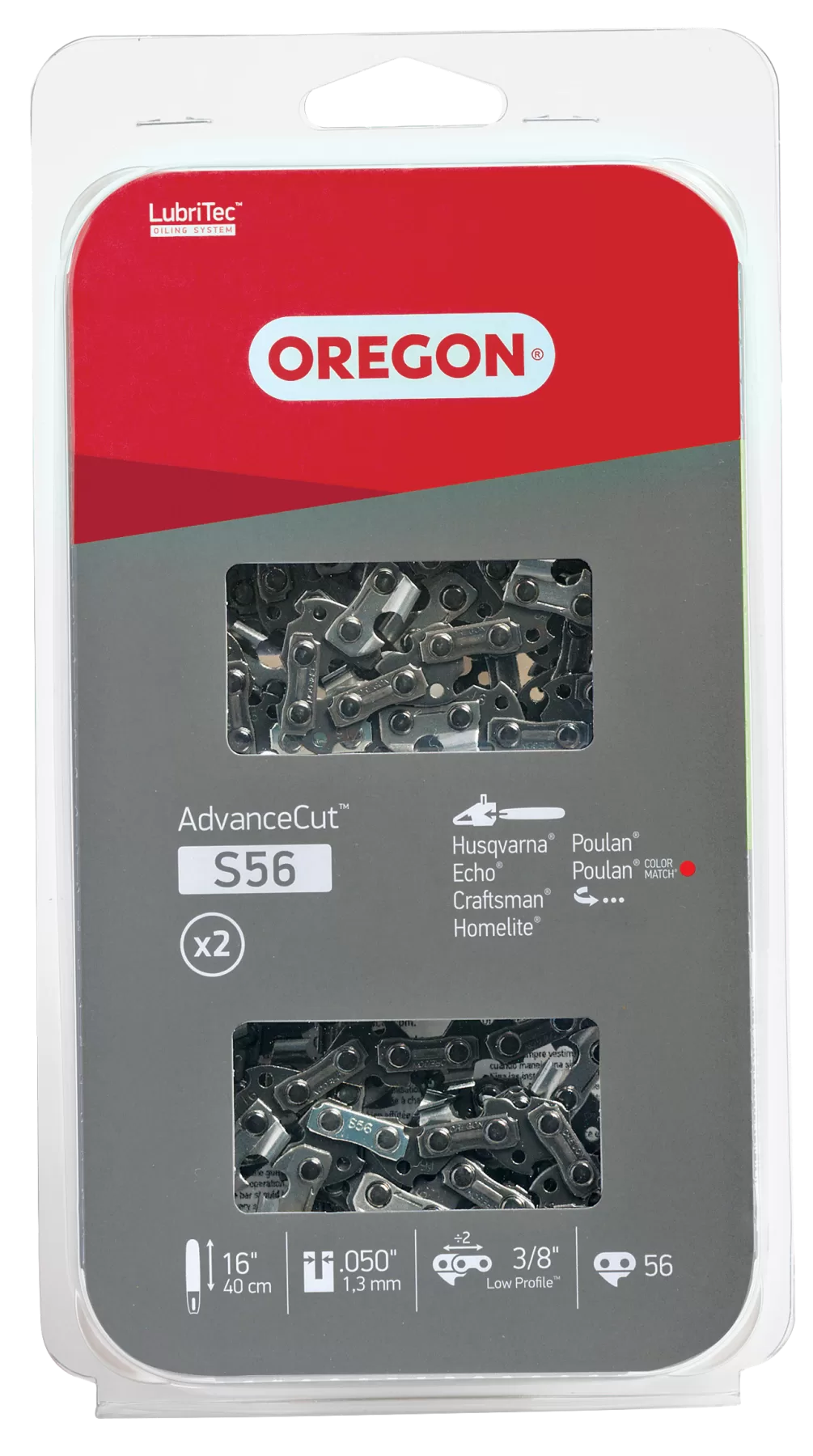 Fits Craftsman, Echo, Homelite, Husqvarna Poulan and Poulan Pro. Value pack contains 2 saw chains.. file=5/32, bar=16″, gauge=0.05, links=56, pich=3/8 2pack