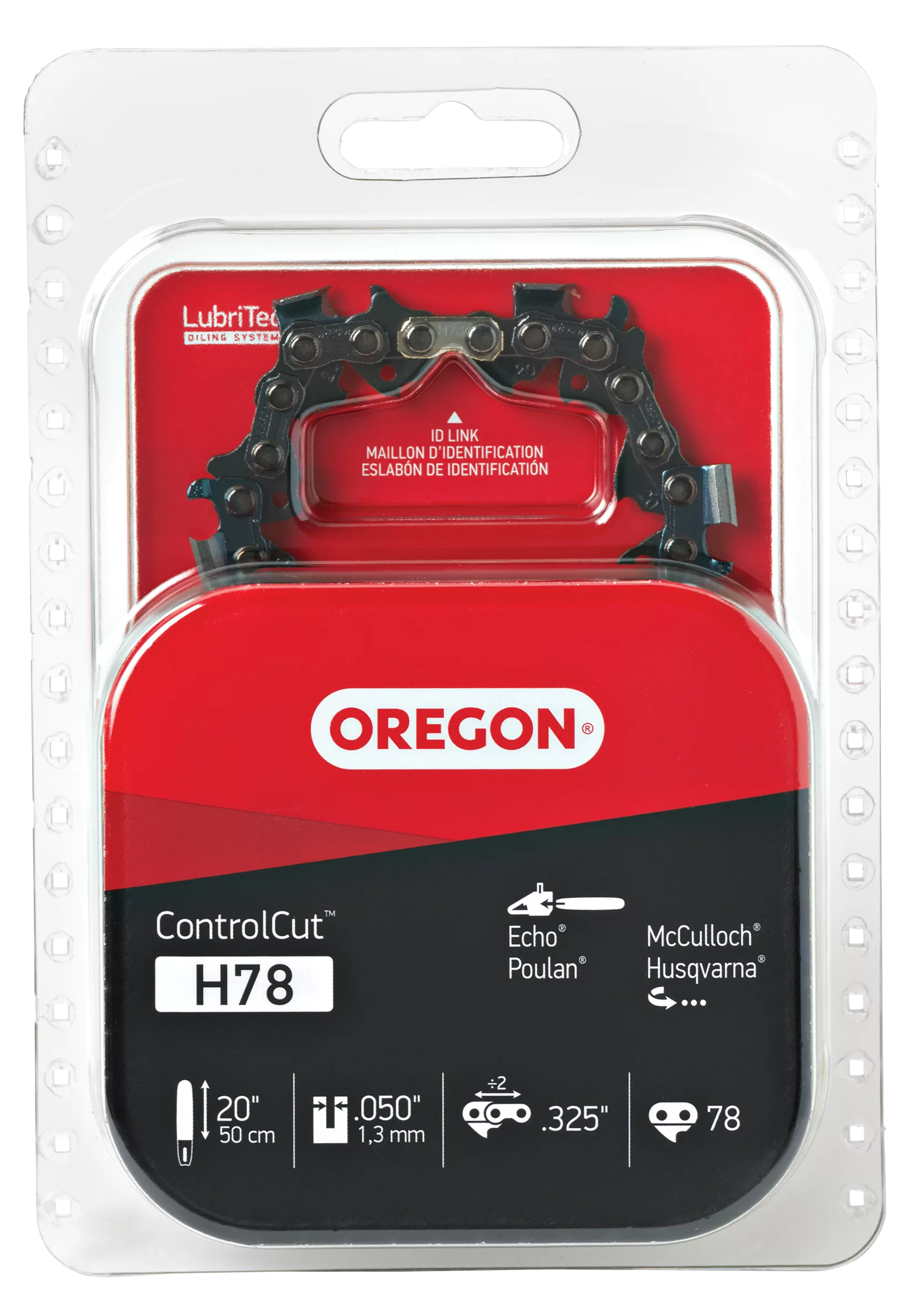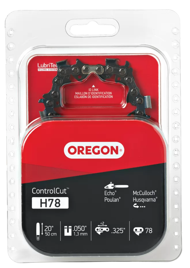 Oregon H78 Chainsaw Chain, 20 in L Bar, 0.05 Gauge, 0.325 in TPI/Pitch, 78-Link. Echo Husqvarna and Poulan Chainsaws.