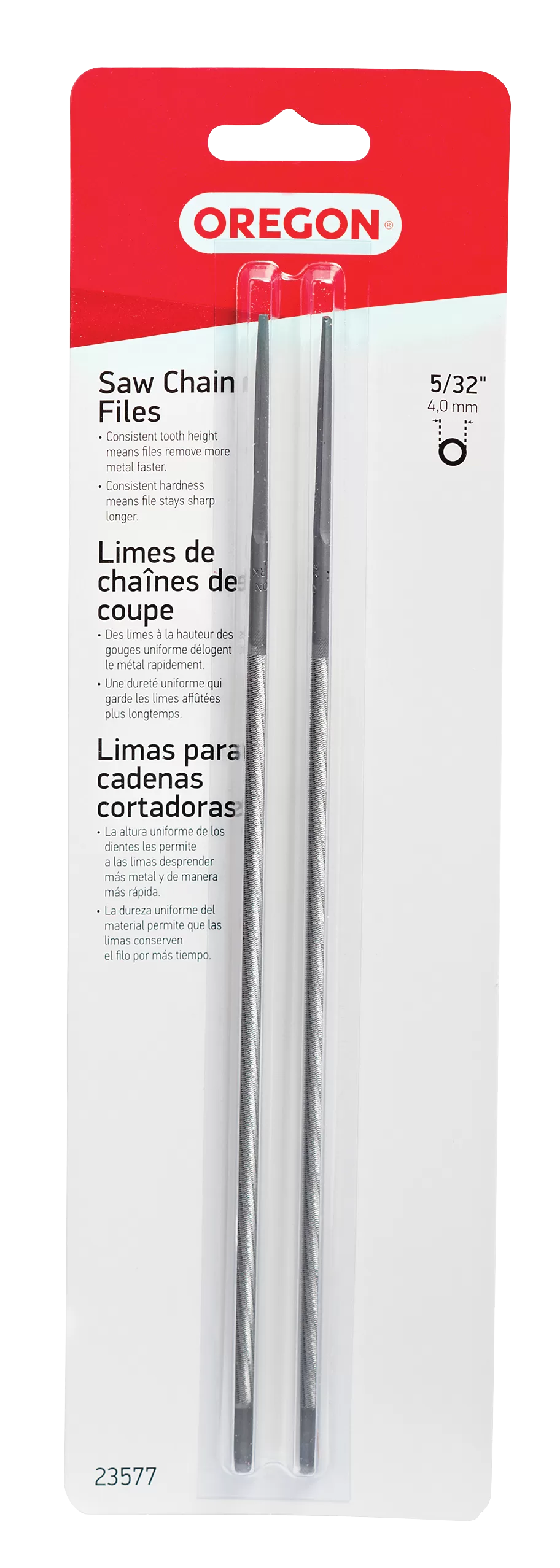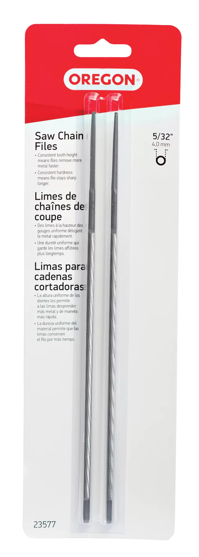 Oregon 23577 Chainsaw File, Double Cut, 5/32 in Dia Dimensions, Round, Steel, 2/PK