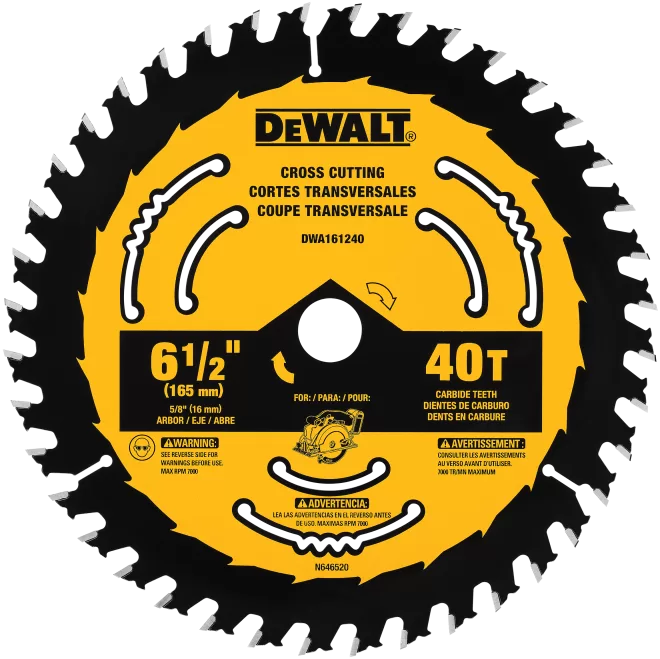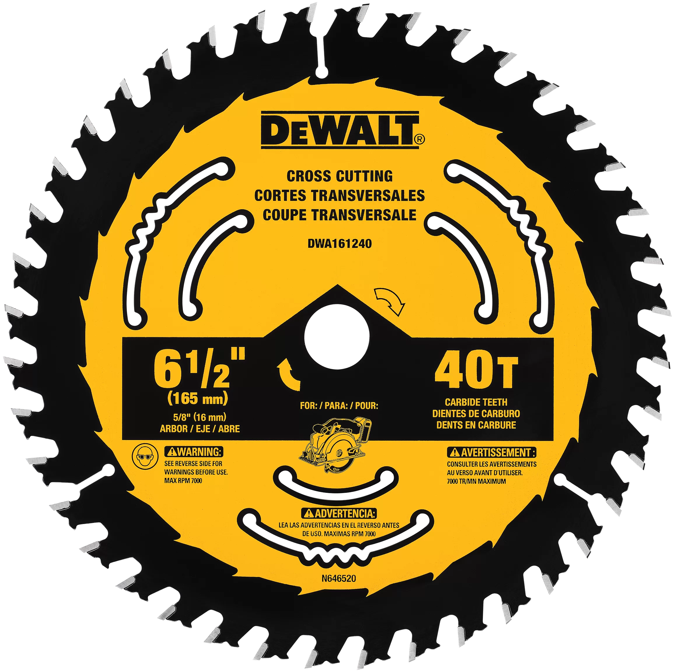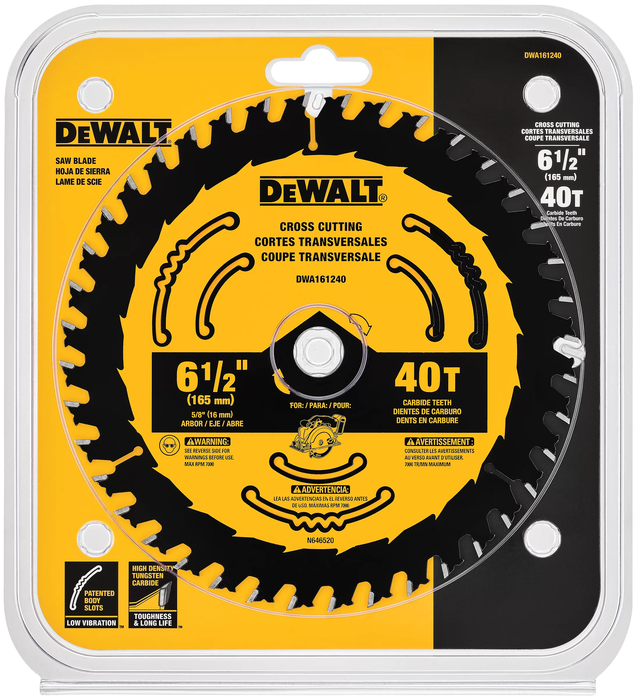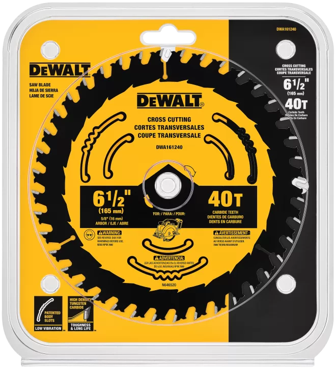 State-of-the-art DEWALT Circular Saw Blades cut through tough jobs with ease. *vs. prior design DEWALT 7-1/4 in. 24T circular saw blade with 3 heat vents, cutting double-stacked 3/4 in. x 48 in. particle board.