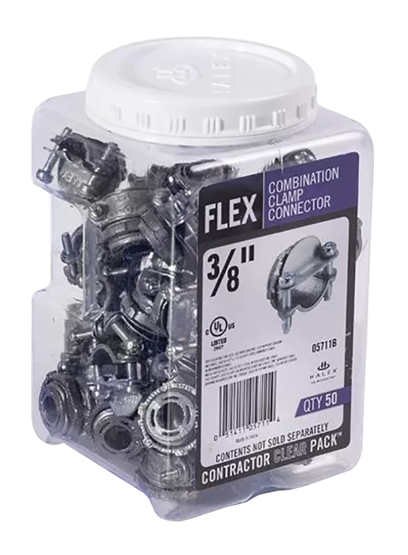 Halex Conduit Connector, Combination Clamp, Trade Size: 3/8 in, 1/2 in Connection, Zinc, Includes: (2) Screws