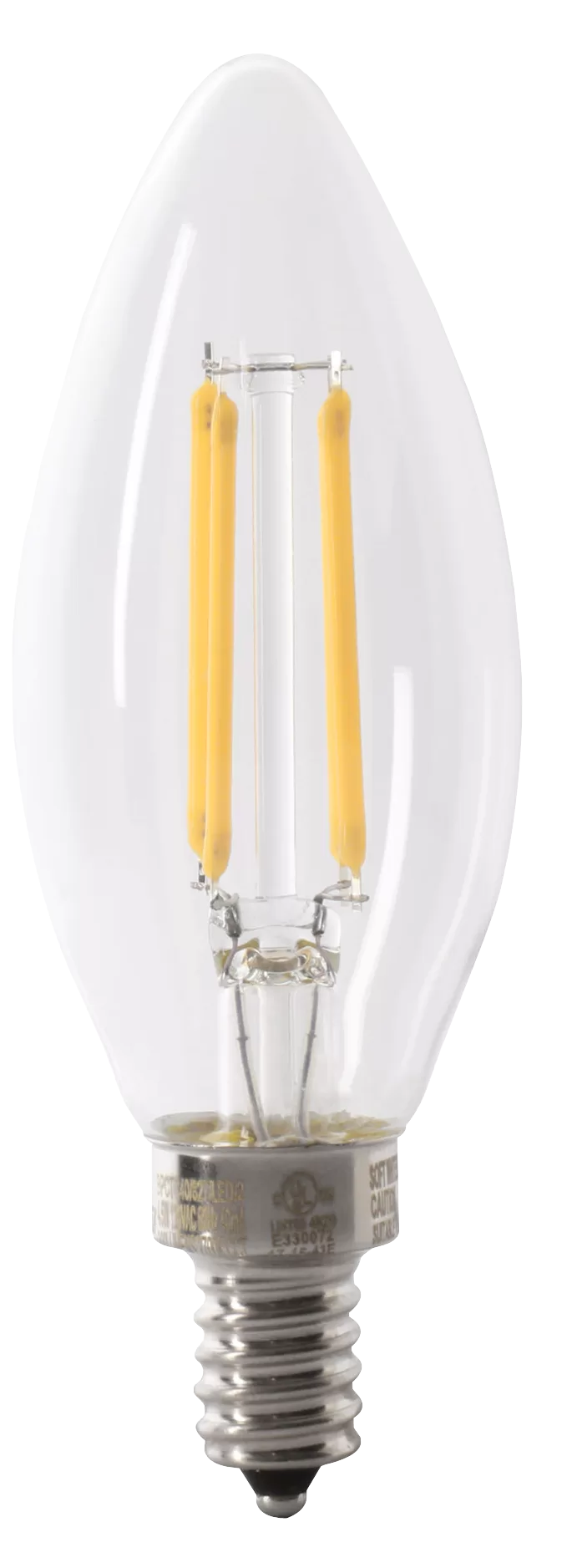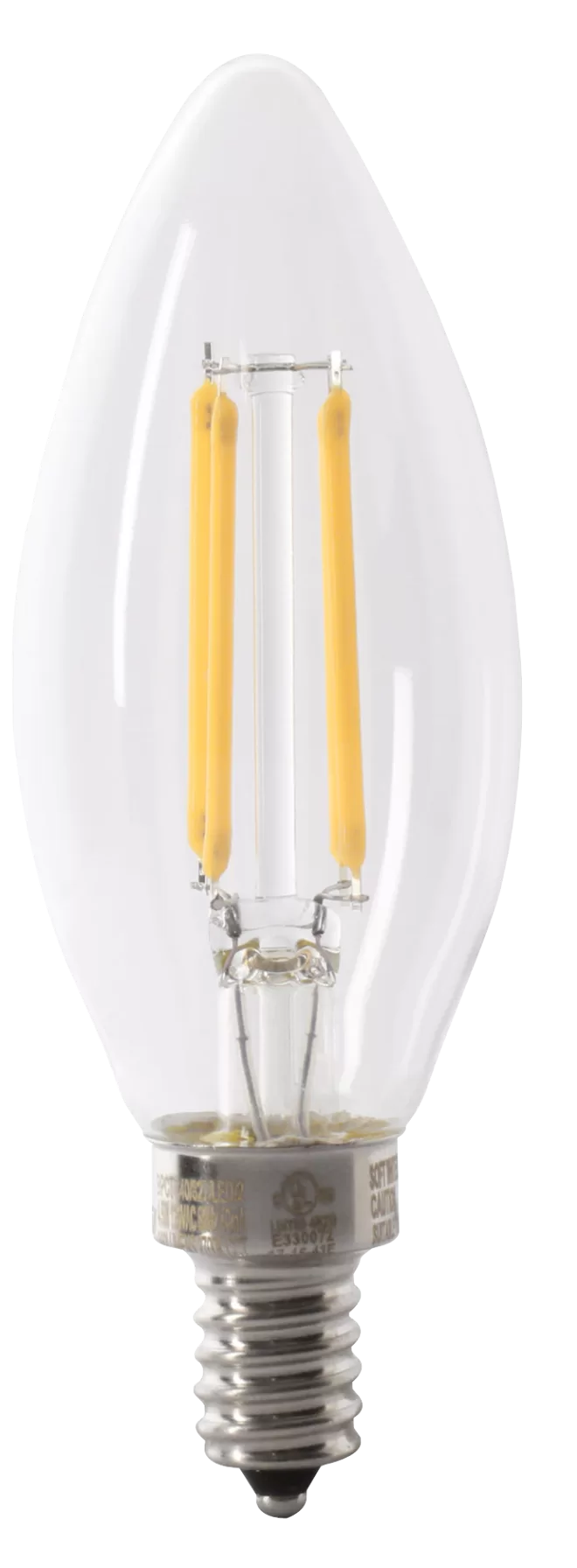 40W eq / 3.3W act, 120V, 300 Lumens, Color: 5000K (Daylight), Lamp Base: E12, Lamp shape: B10, Lamp Finish: Clear, Lamp Material: Glass, Average Life: 15000 hr