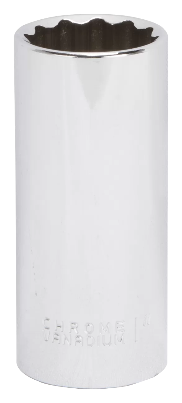 Socket Size: 1″, Drive Size: 1/2″, Outside Drive End Diameter: 1-3/8″, Number of Points: 12, Length: 3″, Material: Chrome Vanadium Steel