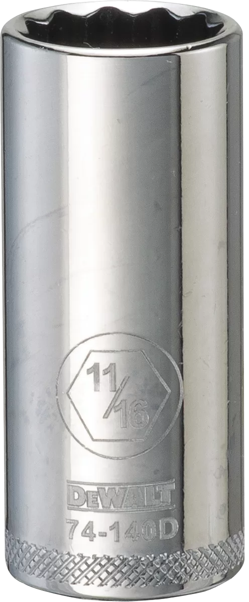 Socket Size: 11/16″, Drive Size: 3/8″, Outside Drive End Diameter: 15/16″, Nut End Outside Diameter: 15/16″, Number of Points: 12, Length: 2-7/32″, Material: Chrome Vanadium Steel