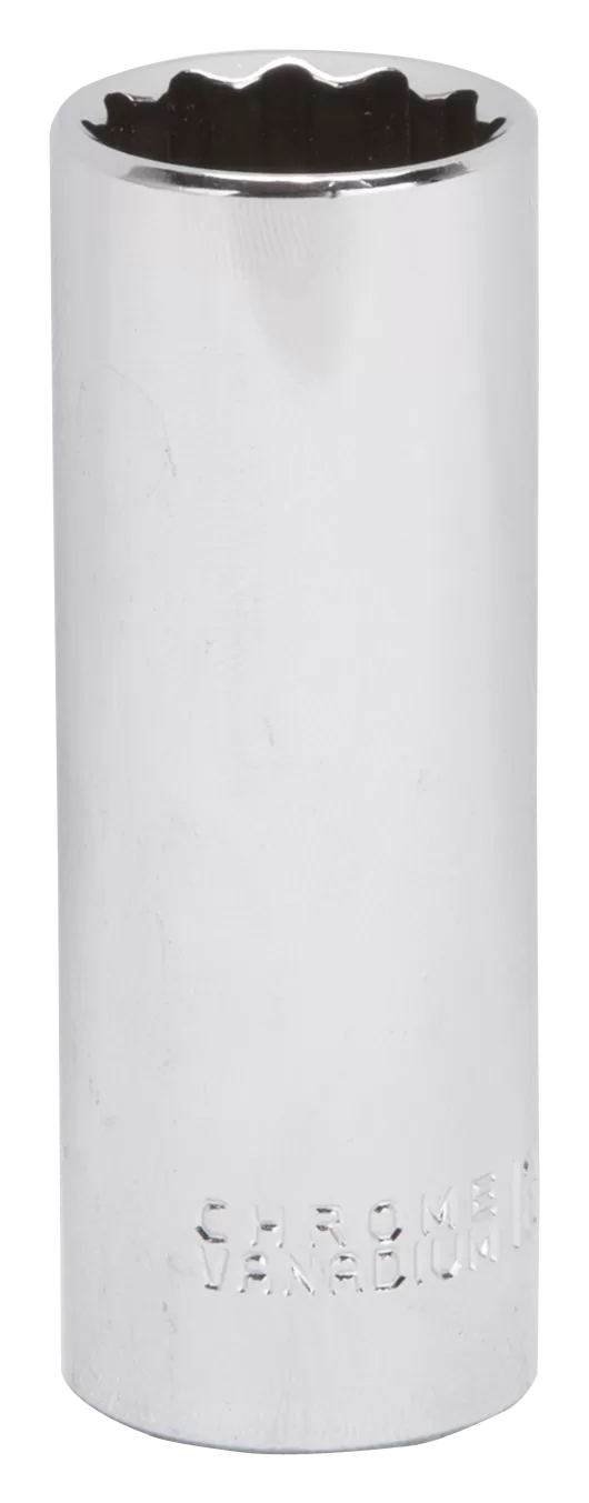 Socket Size: 13/16″, Drive Size: 1/2″, Outside Drive End Diameter: 1-1/8″, Nut End Outside Diameter: 1-1/8″, Number of Points: 12, Length: 3″, Material: Chrome Vanadium Steel