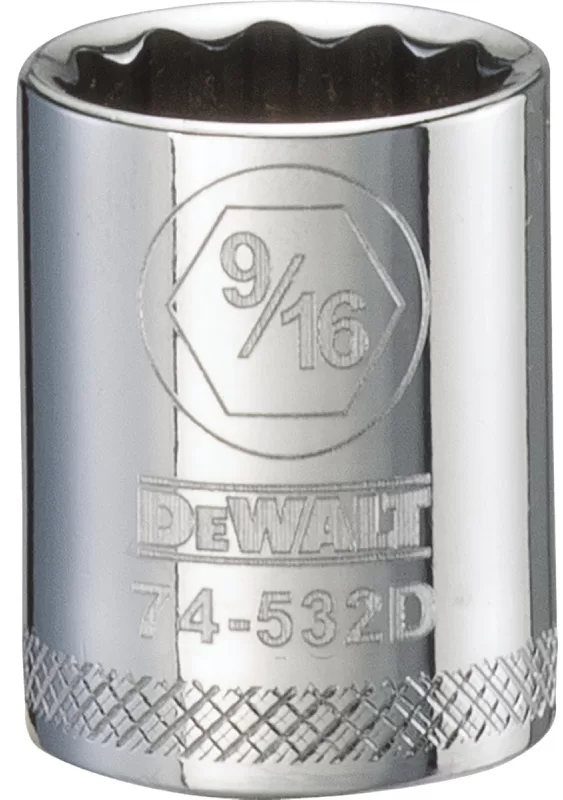 Socket Size: 9/16″, Drive Size: 3/8″, Outside Drive End Diameter: 25/32″, Nut End Outside Diameter: 25/32″, Number of Points: 12, Length: 1″, Material: Chrome Vanadium Steel