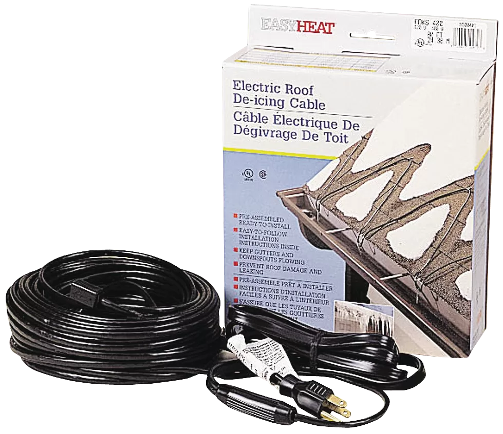 EasyHeat ADKS roof and gutter de-icing cables prevent ice dam formation and promote the free flow of water through gutters and downspouts to ground level.