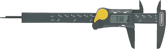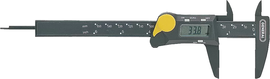 The #147 6 in steel digital caliper has an extra-large, easy-to-read tri-mode digital display and switches quickly and easily between decimal inches, fractional inches and millimeters at the touch of a button.