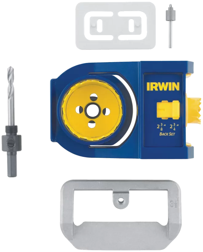 The IRWIN Wood & Metal Door Lock Installation Kit uses durable carbon hole saws to cut openings in interior and exterior wooden doors for installing lock and handle sets in four easy steps.