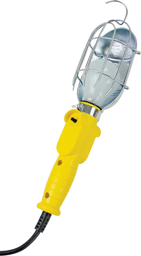 PowerZone ORTL010625 Work Light with Metal Guard and Single Outlet, 12 A, Incandescent OR LED Lamp, 25 ft L Cord, Yellow