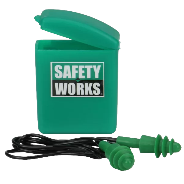 Safety Works Ear Plugs, Noise Reduction Rate (NRR): 23 dB, Ear Plug Material: Rubber, Includes: (1) Pair Ear Plug and Case