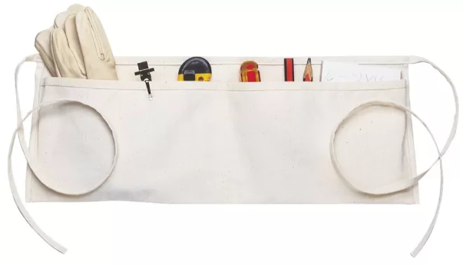 This standard 2-pocket cotton canvas work apron helps keep loose items close at hand.