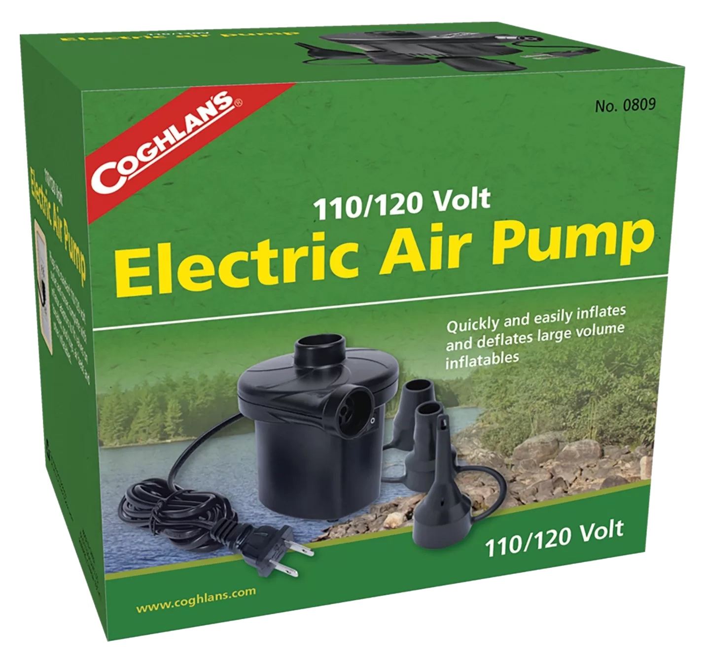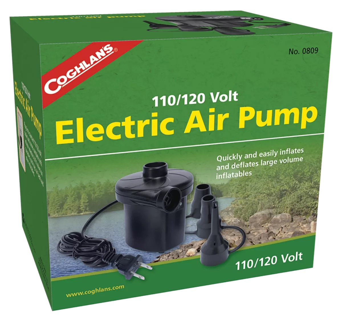 Fills inflatables quickly. A typical twin size air mattress can be inflated in about 1 min. Plugs into a 110/120 V outlet and comes with 3 valve adapters. Comes with a 10 ft power cord. Can be used for both inflation and deflation.