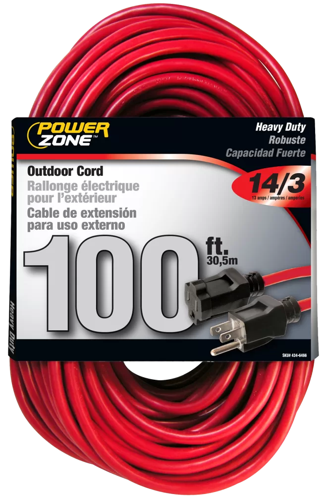 Extension Cord, 14 AWG Cable, 100 ft L, 125 V, Red. Outdoor Extension Cord is water, weather, and abrasion resistant and flame retardant. You can use the extension cord to plug in power tools, holiday light displays