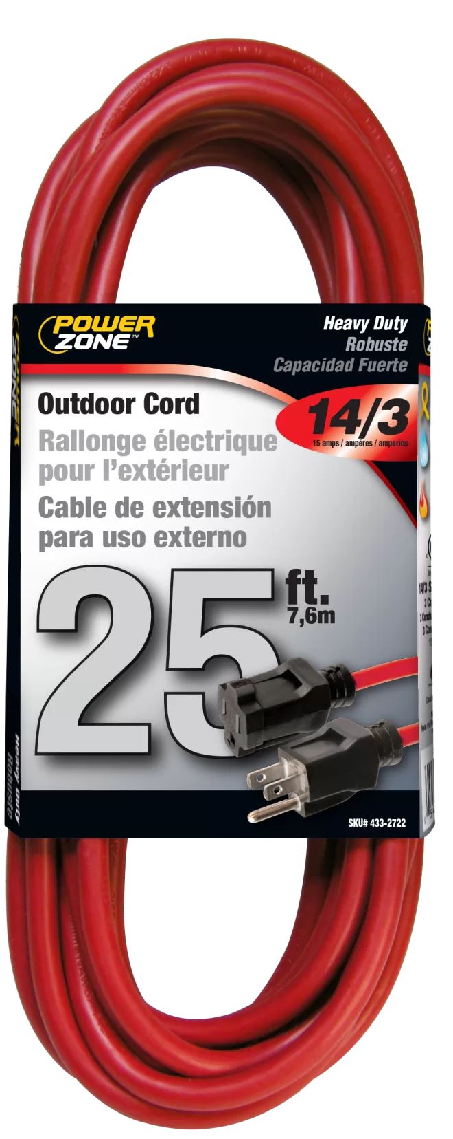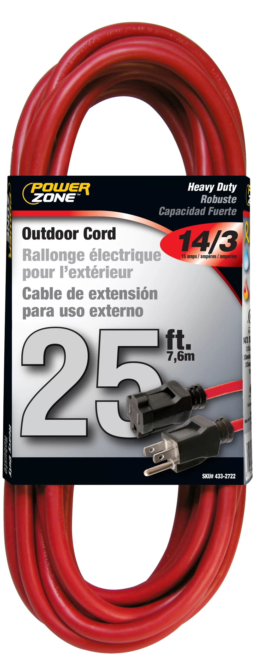 PowerZone Extension Cord, 14 AWG Cable, 25 ft L, 125 V, Red