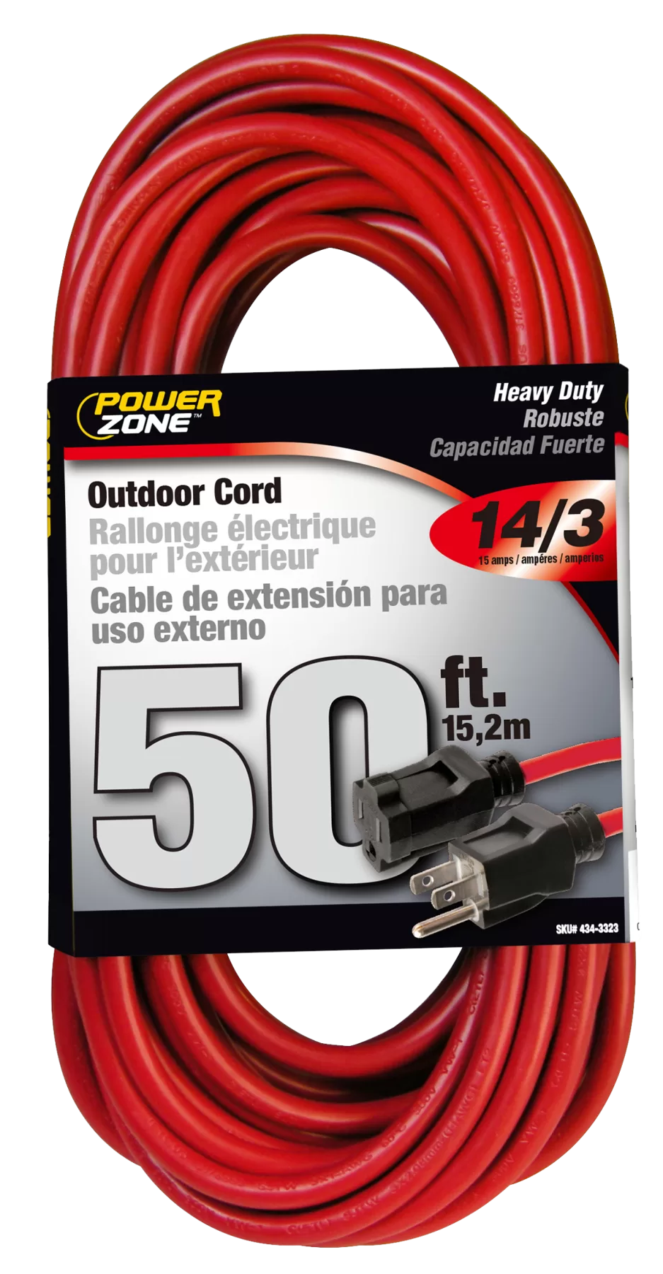 PowerZone Extension Cord, 14 AWG Cable, 50 ft L, 125 V, Red