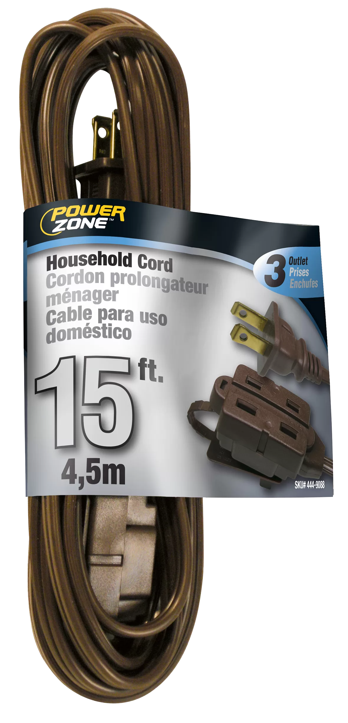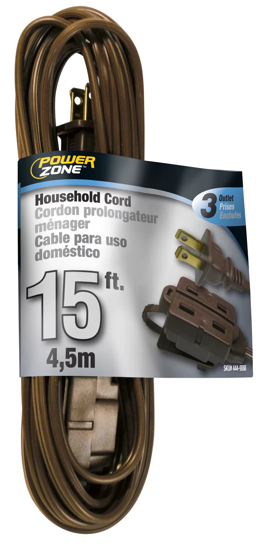 3-outlet indoor cords allow use of up to three items in one small place. 16 AWG Cable, 15 ft L, 125 V, Brown