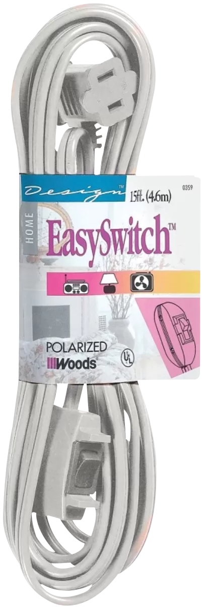 EXT CORD 16/2 WHT 15′ SWITCH