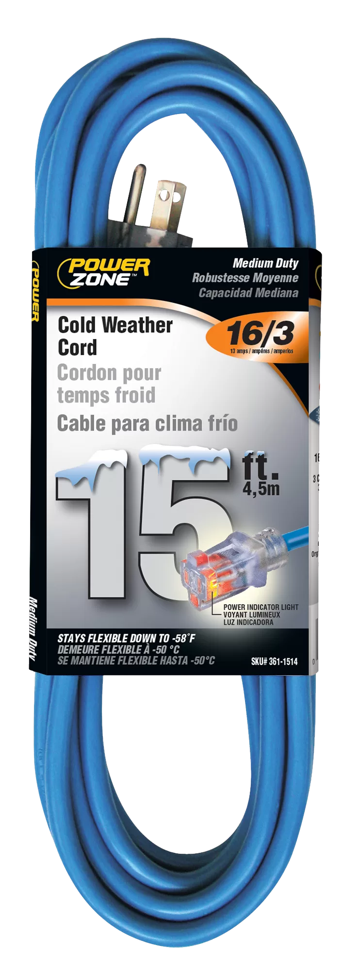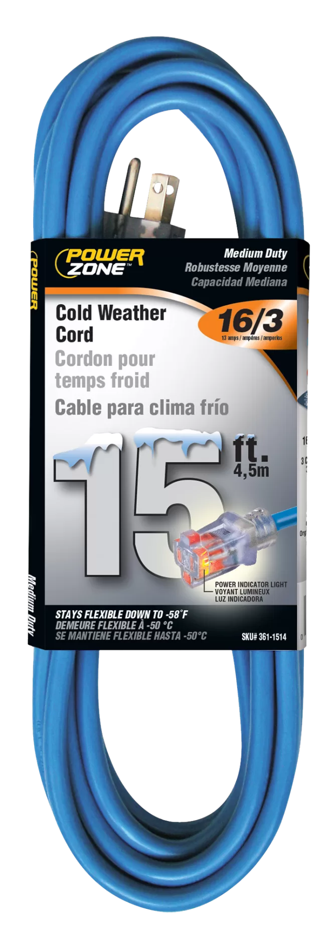 EXT CORD 16/3 GLACIER 15′