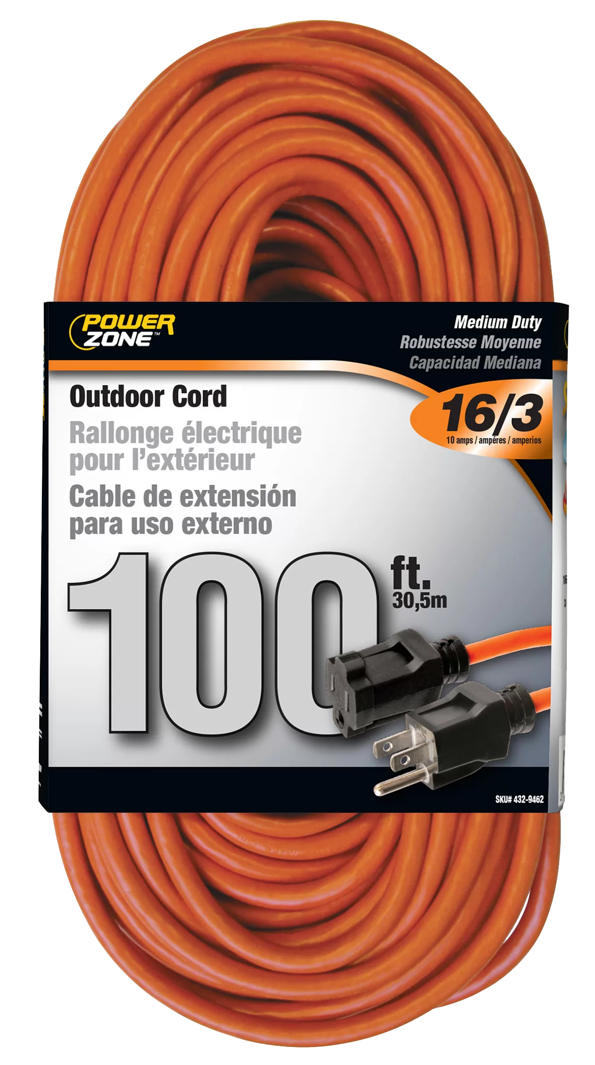 Extension Cord, 16 AWG Cable, 5-15P Grounded Plug, 5-15R Grounded Receptacle, 100 ft L, 125V. Outdoor Extension Cord is water, weather, and abrasion resistant and flame retardant. You can use the extension cord to plug in power tools, holiday light displa