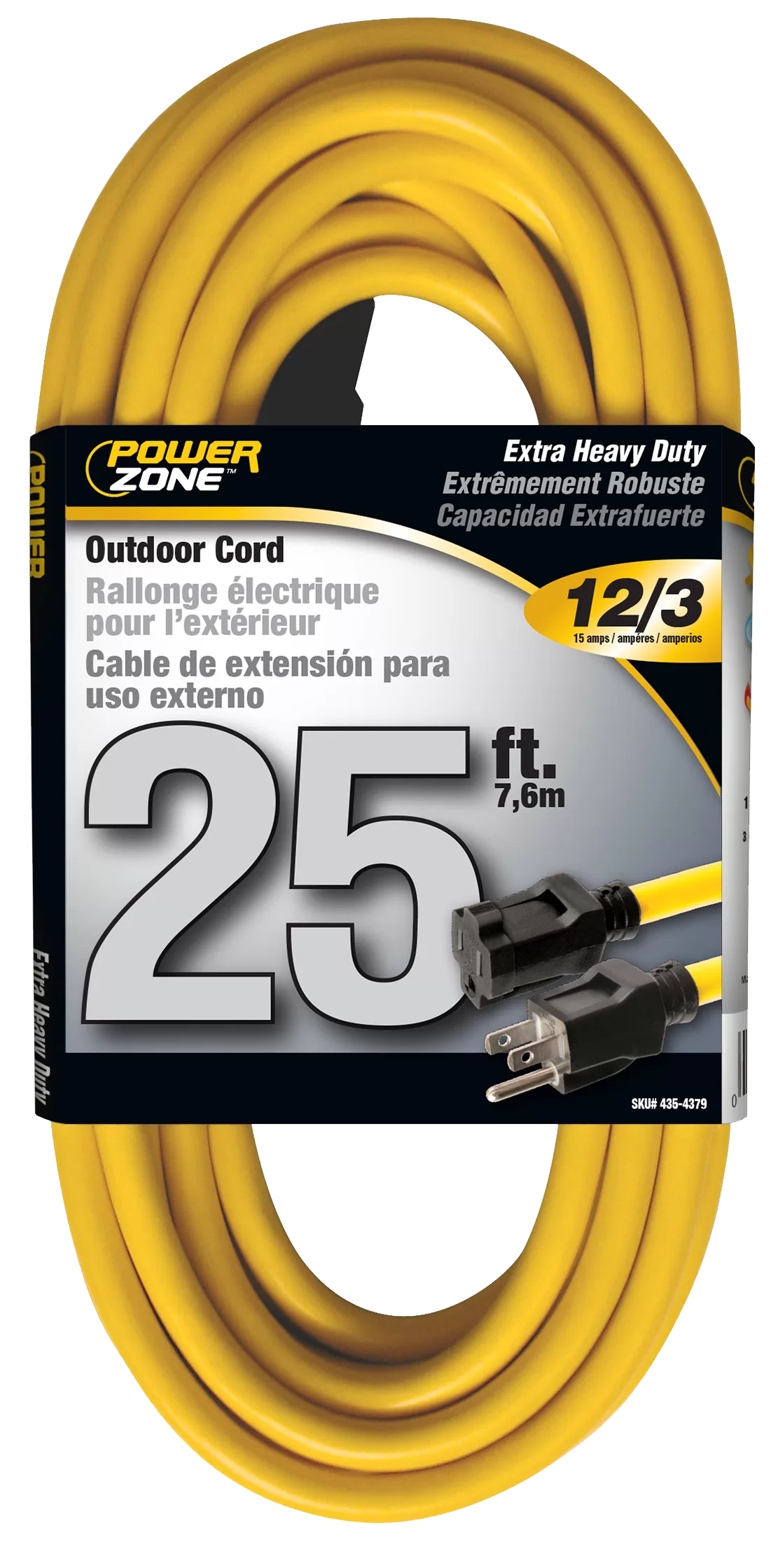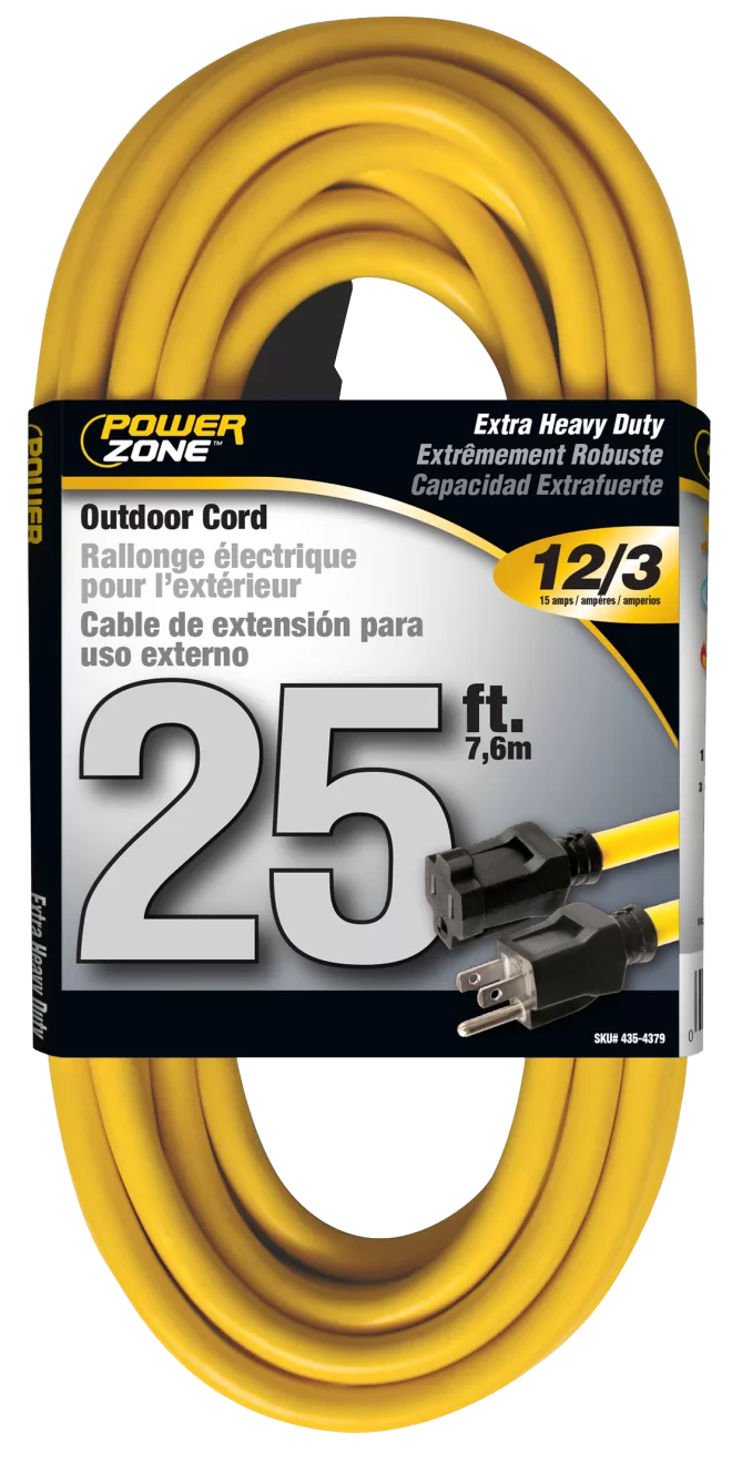 PowerZone Outdoor Extension Cord is water, weather, and abrasion resistant and flame retardant. This bright yellow extension cord is made for work on job sites and handles up to a 15 amp load.