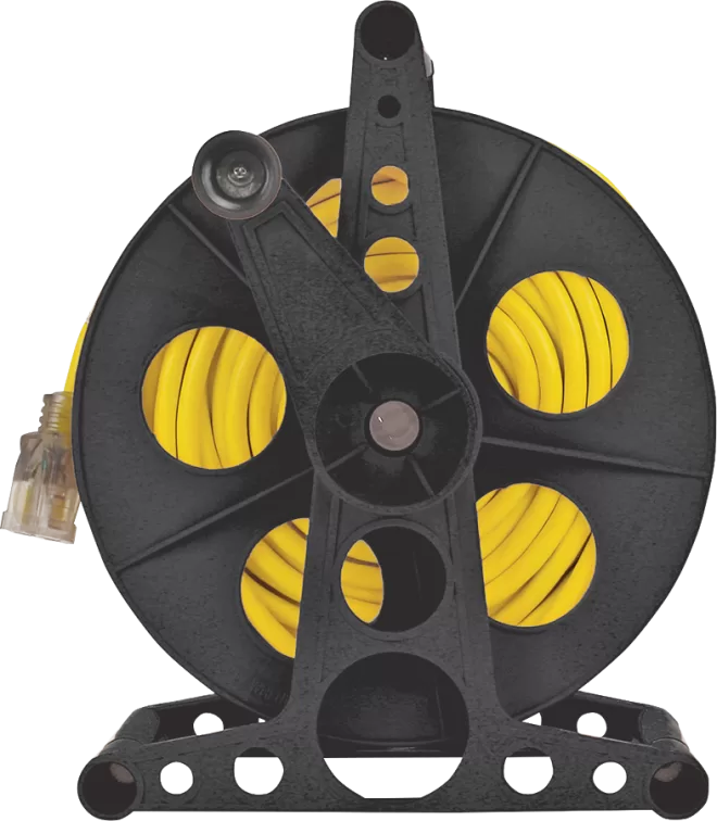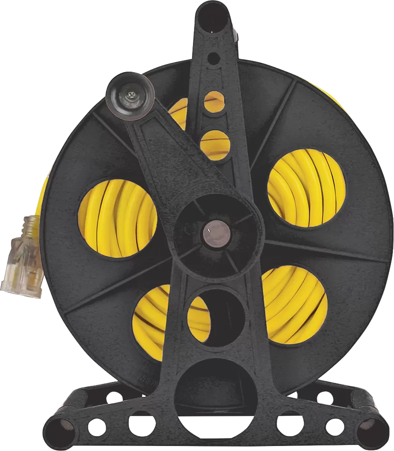Cord Storage Reel with Stand, 100 ft L Cord, 16 AWG Wire, Black