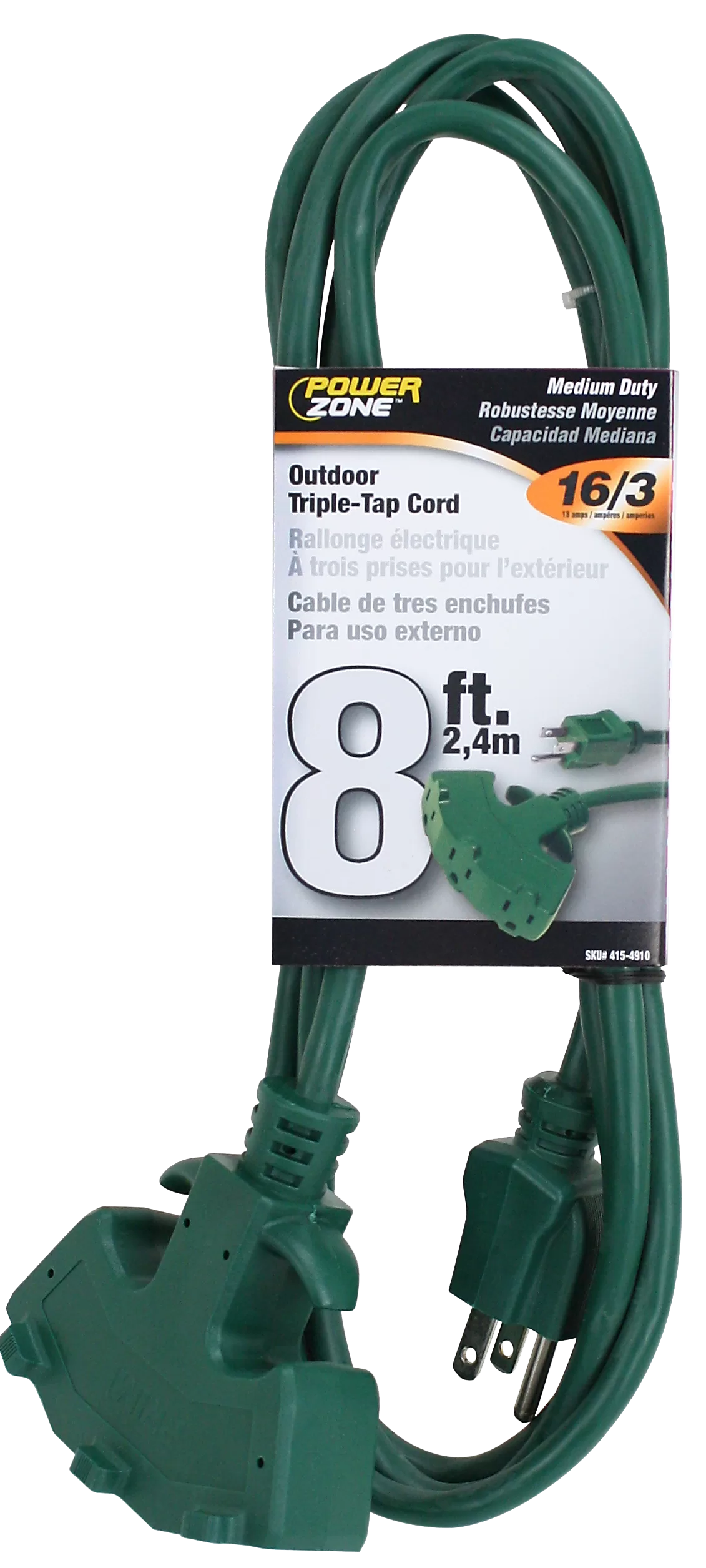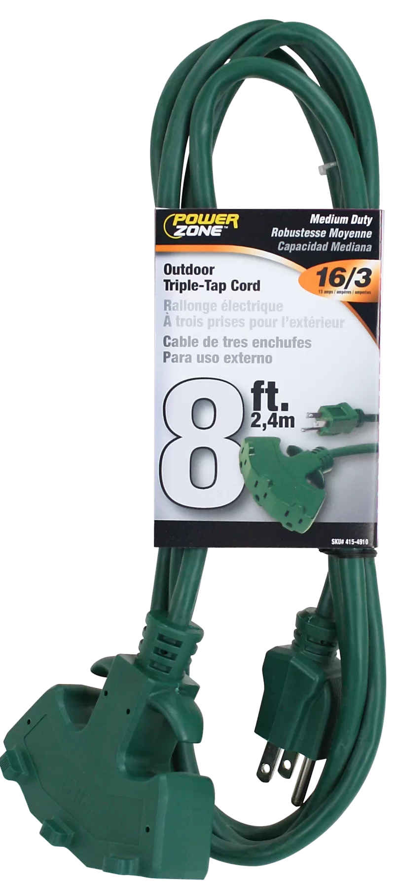 EXT TAP 3-OUT 16/3 GREEN 8′