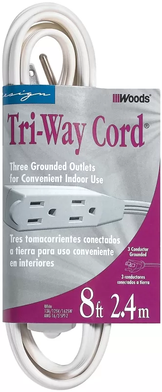 EXT TAP 3-OUT 16/3 WHITE 8′