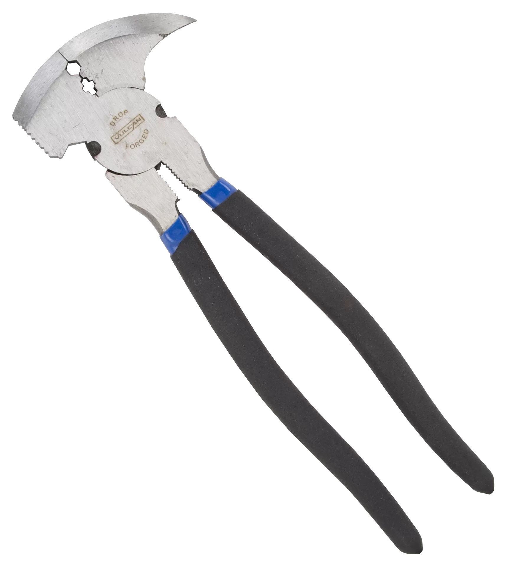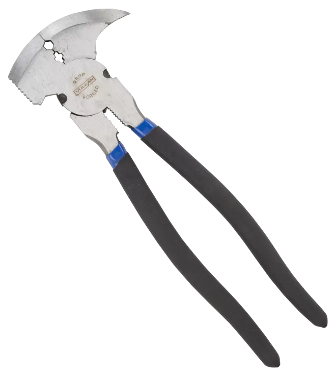 This Vulcan fencing Plier is made from jaw material: Carbon steel. The handle is made of PVC and it’s non-Slip. The overall length is 10 in.