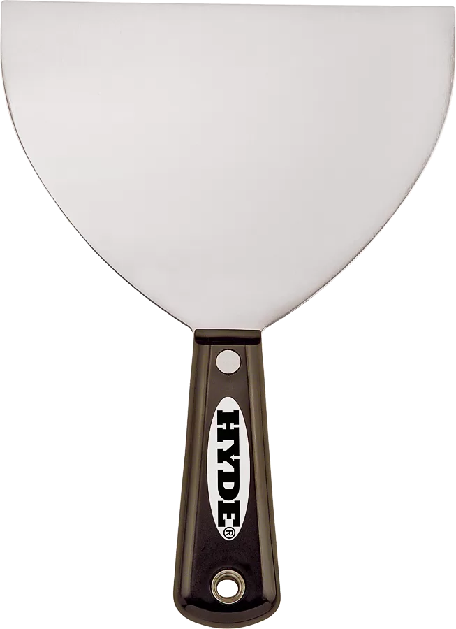 6 in flexible blade with desired flex point for applying and smoothing compound and taping joints. Black & Silver joint knife with high-carbon steel blade. Ideal flex point for spreading putty or joint compound. Durable nylon handle. Full-tang blade.