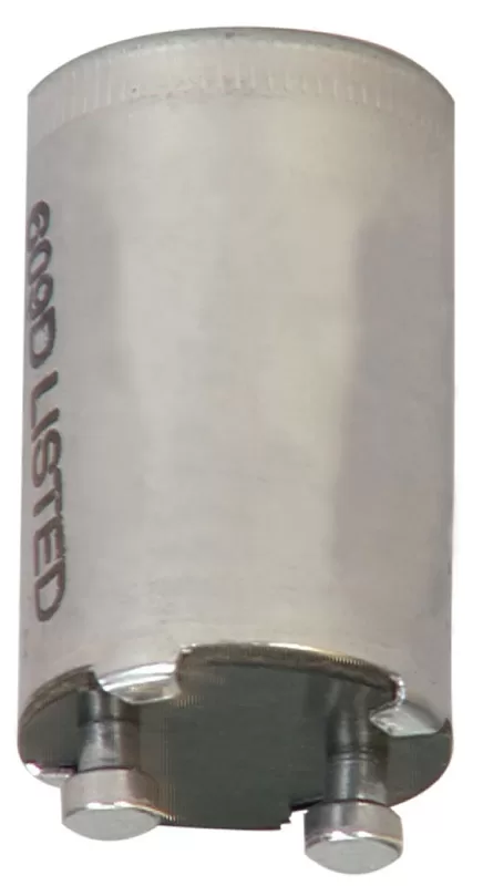 Fluorescent starters – condenser type all-purpose two-terminal standard starter accurately timed to combine starts with long bulb life. For use where lights are turned on more than 5X daily. Also in devices where bulb life expectancy is 2 years or less.