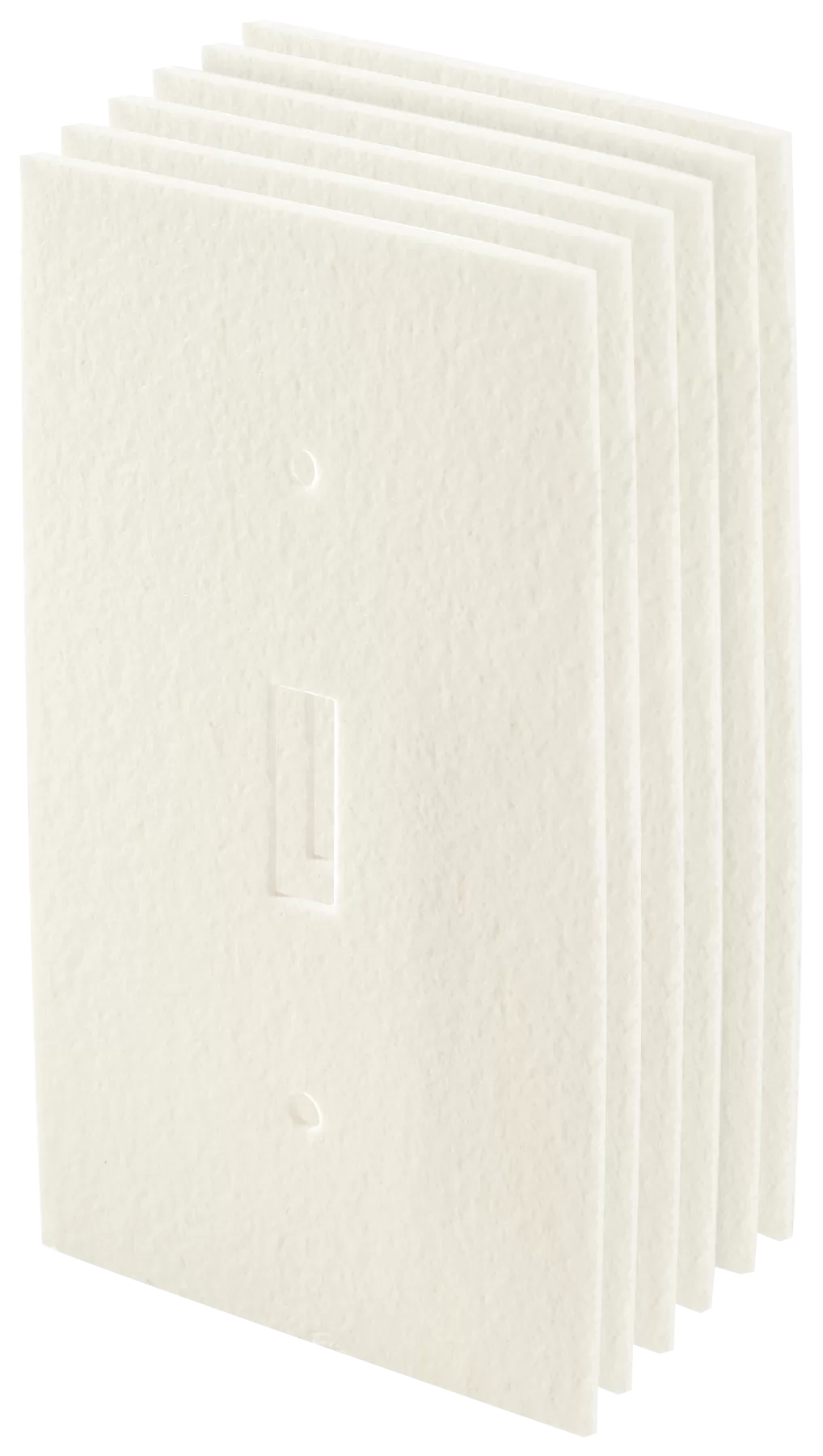 witch Sealer, 4 in L, 2-1/2 in W, Plastic Foam, White. Fire retardant plastic foam reduces drafts and heat loss. Enough for six standard electrical switches. 2-1/2 in W x 4 in H.