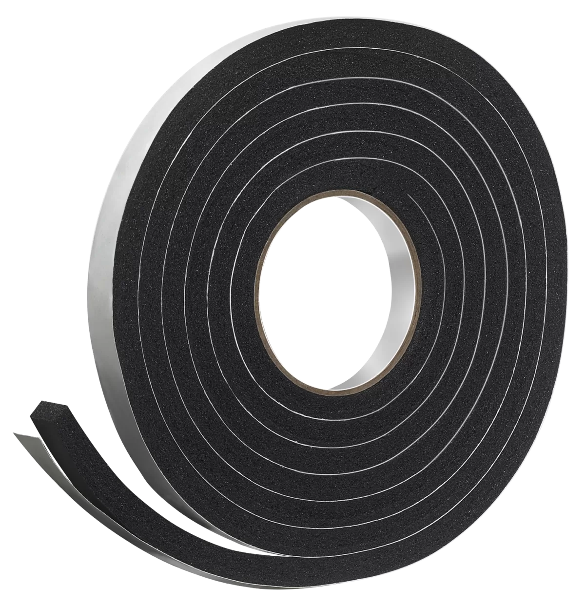 Foam Tape, 3/4 in W, 10 ft L, 7/16 in Thick, Rubber, Black. A tough, durable self-stick tape with minimal compression. Use the rubber foam weatherseal as a weatherstrip or as a gasket or to cushion and stabilize major appliances.